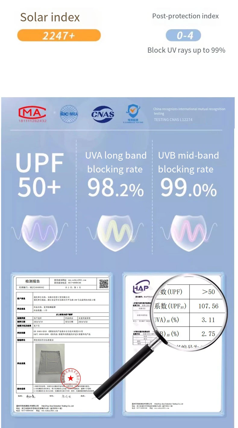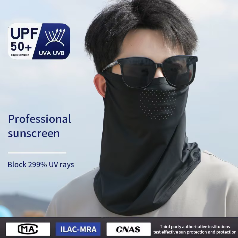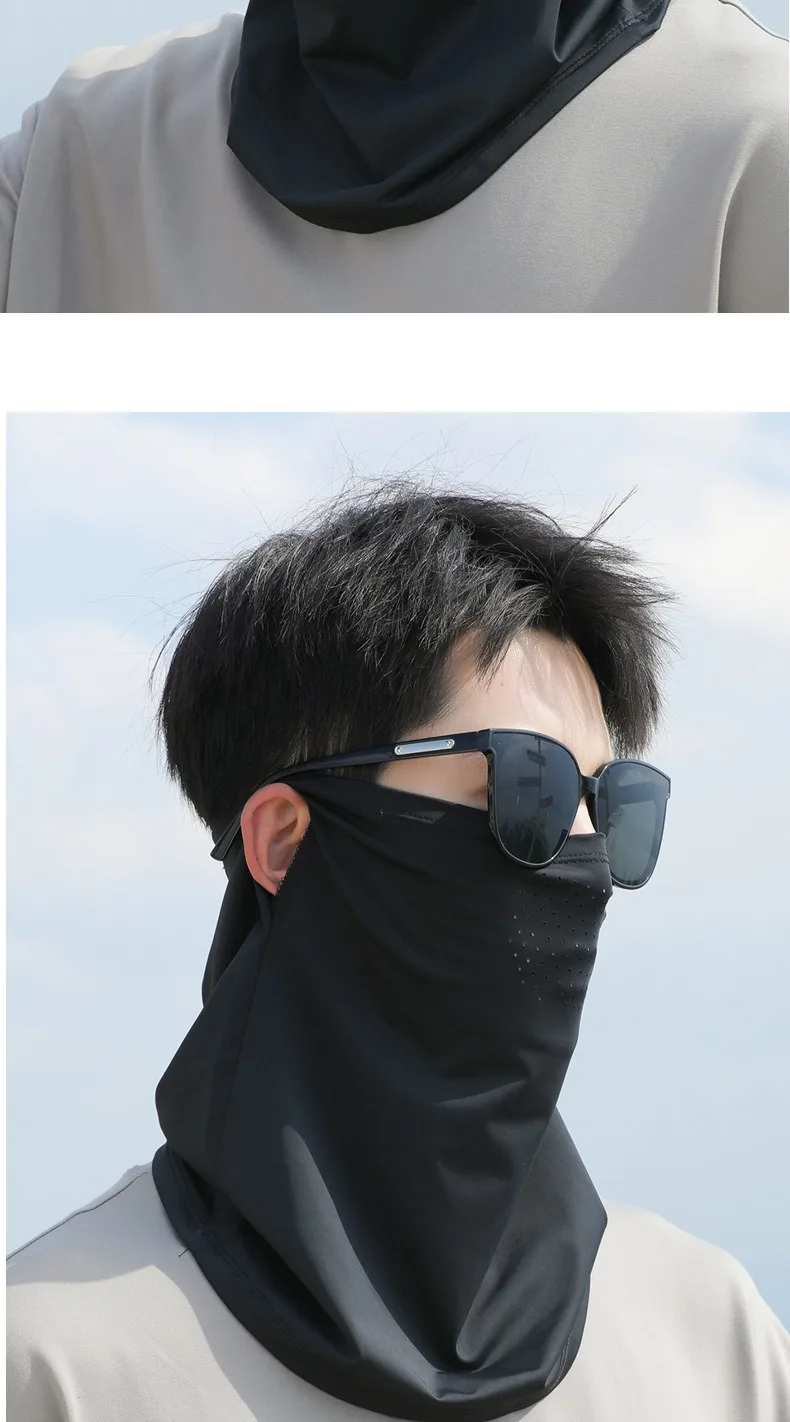1.La mascarilla de seda helada de protección solar de verano es un equipo de protección facial muy práctico para protección solar y protección del cuello.Está hecho de material de seda helada, que es transpirable y cómodo, y puede prevenir eficazmente la luz solar directa y reducir el daño ultravioleta.