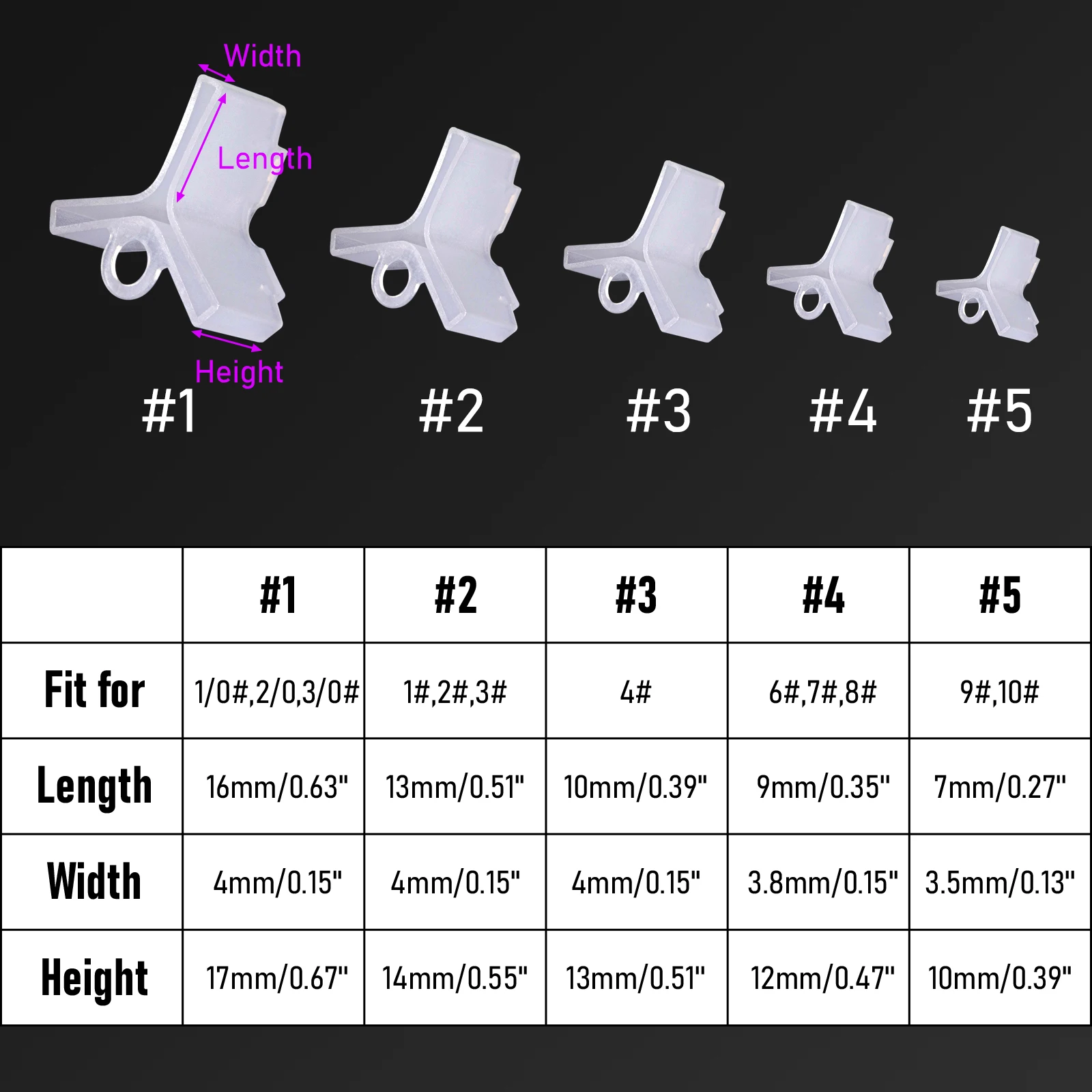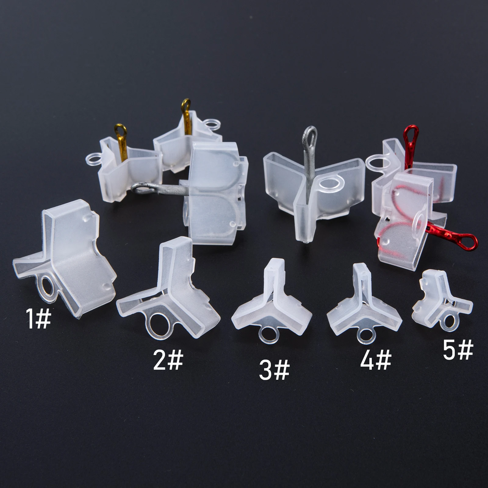 Fácil de instalar y quitar. Hecho de plástico, duradero y ligero. El diseño hueco permite que los ganchos se sequen mientras la tapa está puesta. Con el mango en el borde, es conveniente colocar o sacar los ganchos Cantidad: 25 piezas 1 # cubierta de gancho: apto para gancho triple estándar 1/0 #, 2/0 #, 3/0 # 2 # cubierta de gancho: apto para gancho triple estándar 1 #; 2 #, 3 # 3 # cubierta de gancho: apto para gancho triple estándar 4 #, 5 # Cubierta de gancho 4 #: apto para gancho triple estándar 6 #, 7 #, 8 # 5 # cubierta de gancho: apto para gancho triple estándar 9 #, 10 #