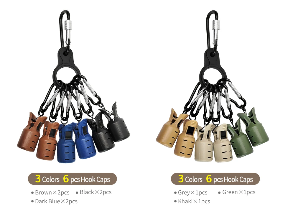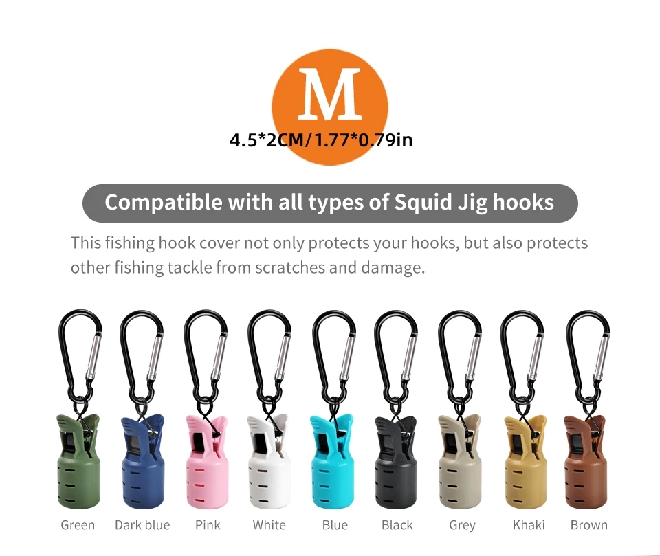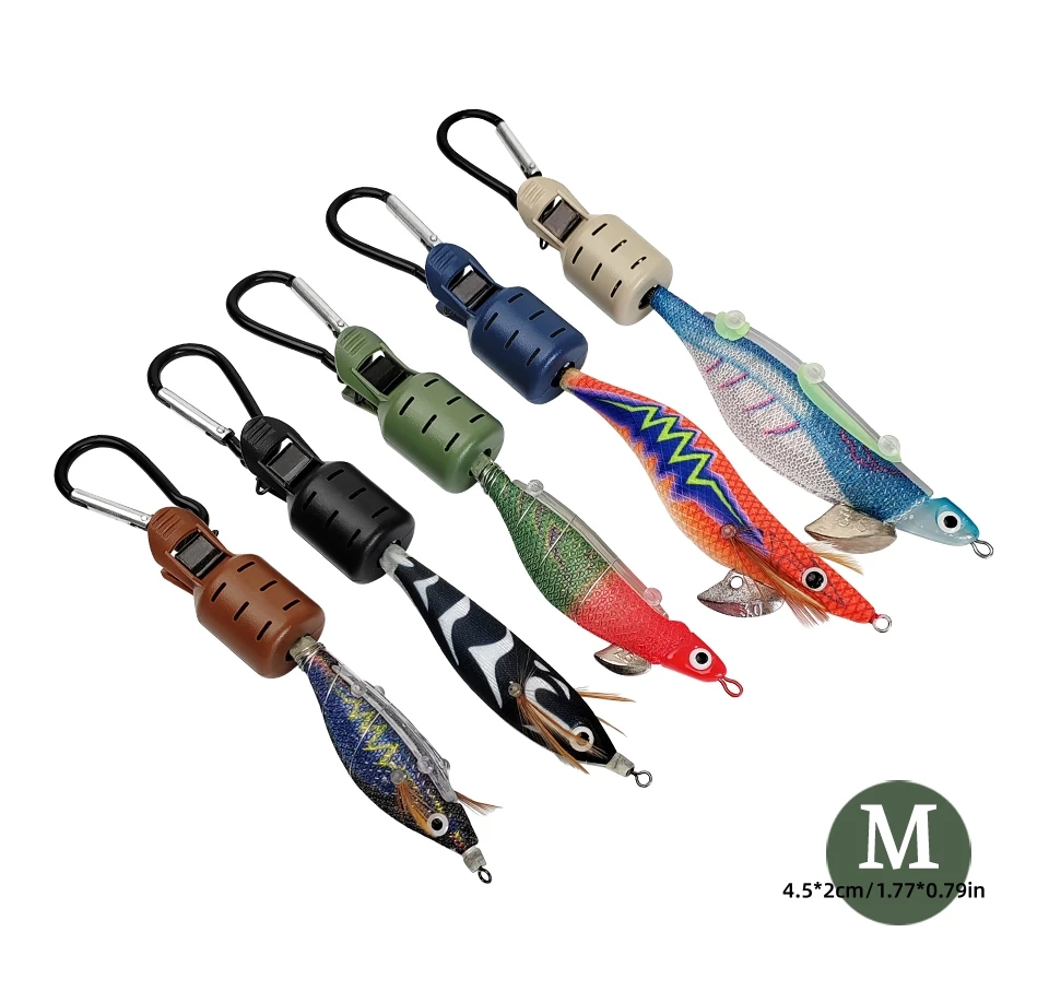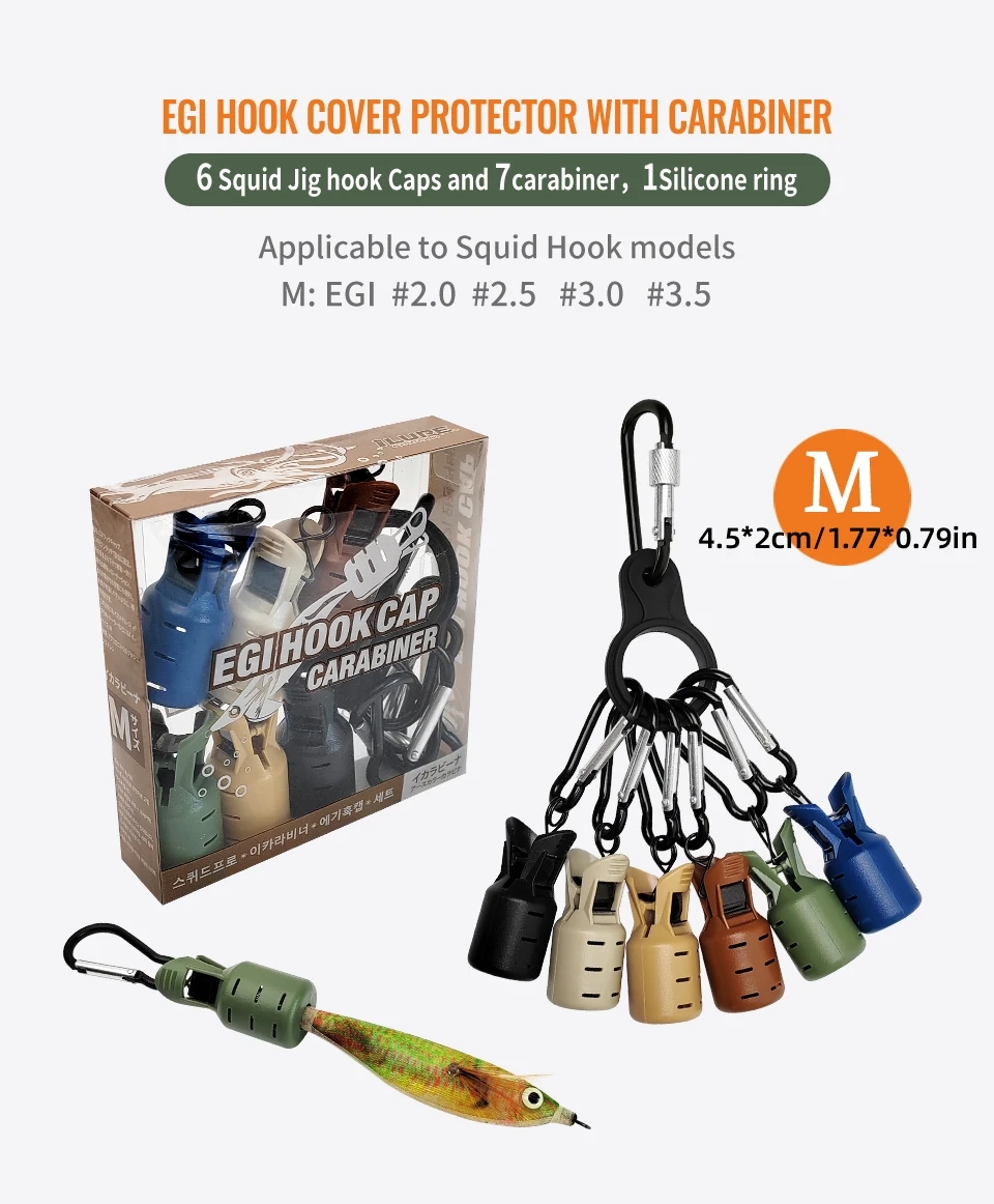 Protector de cebo de plantilla de calamar, 6 piezas, tamaño M, Kit de anzuelos, cubierta de sepia, paraguas, tapa de señuelo con mosquetón, aparejos de pesca