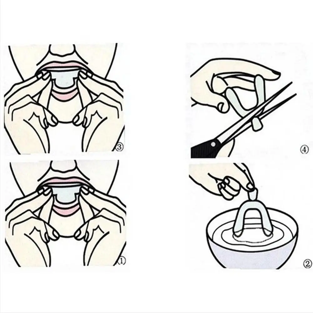 Tipo: bandejas bucales para blanquear los dientes Color: transparente cantidad: 2 tamaño de la piezas: 6,5*6,2*1,3 cm Material: silicona EVA de grado alimenticio El paquete incluye: 2 cubiertas de dientes de la piezas Cómo usar: coloque la bandeja en agua caliente durante 10-15 segundos para ablandarla y sacarla del agua. Coloca la bandeja en la entrada y presiona la superficie adhesiva de la bandeja con la goma de mascar. Corta el exceso en la línea de pegamento.