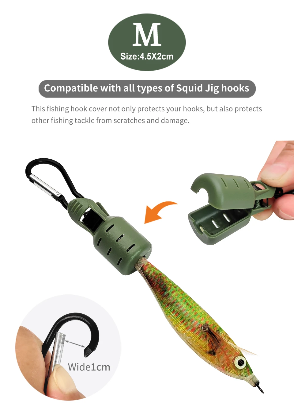 Protector de plantilla de calamar, cubierta de anzuelo de pulpo, paraguas de sepia, gorra de señuelo, máscara de cebo de calamar con mosquetón, nuevo, M 9 piezas