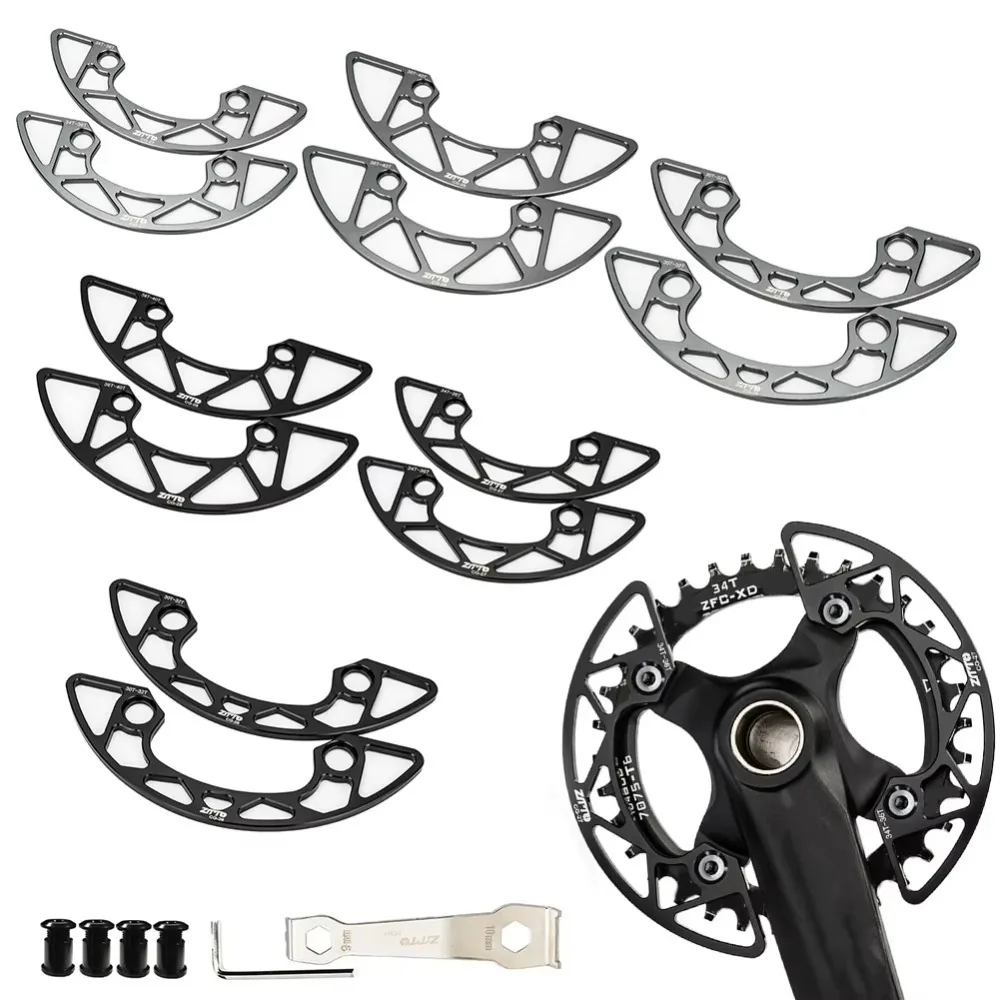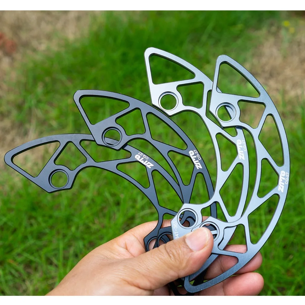 2.Construido con aleación de aluminio de primera calidad, de alta resistencia y resistente al desgaste. Un buen reemplazo para los viejos o rotos del protector de plato de su bicicleta de montaña.