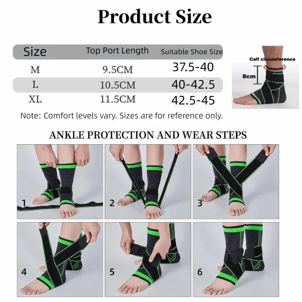 Product Function: Shock absorption; ankle protection; Prevent ankle sprains Packaging Includes: 1PC Sports Ankle Support Compression Strap (Not a pair)