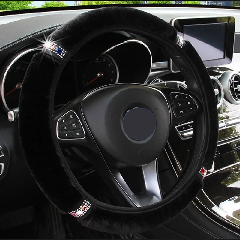 Protector para volante de coche, cubierta de freno de mano para cambio de marchas, decoración cálida, Collar de felpa súper grueso, suave, negro, rosa, mujer y hombre