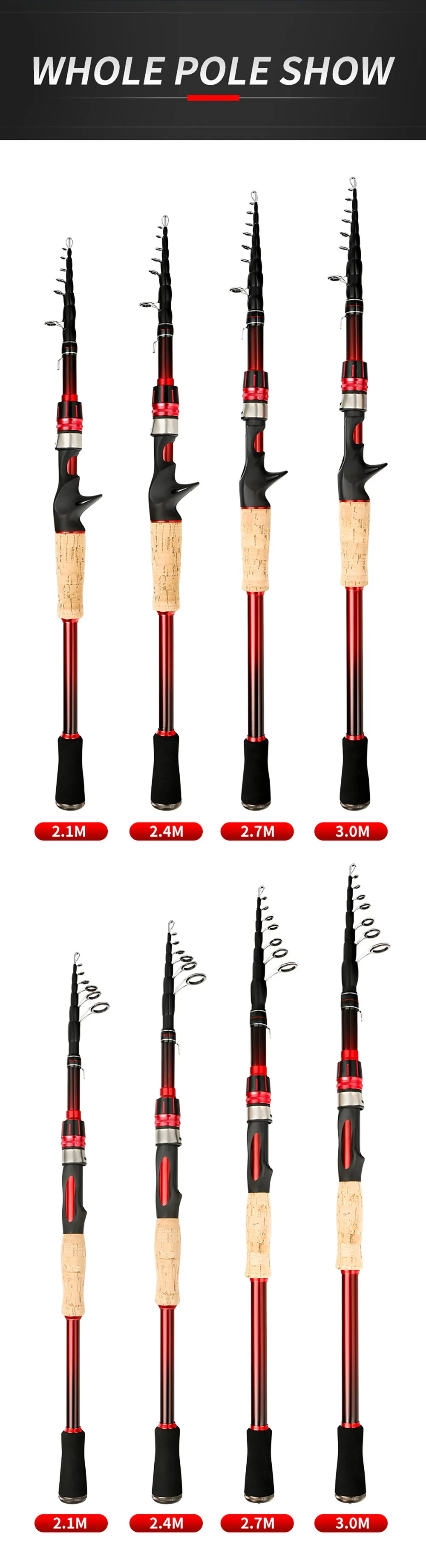 Caña de pescar con señuelo de fundición giratoria telescópica 2,1/2,4/2,7/3,0 M