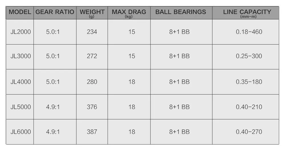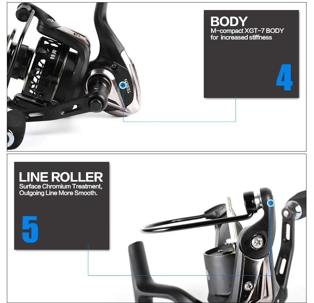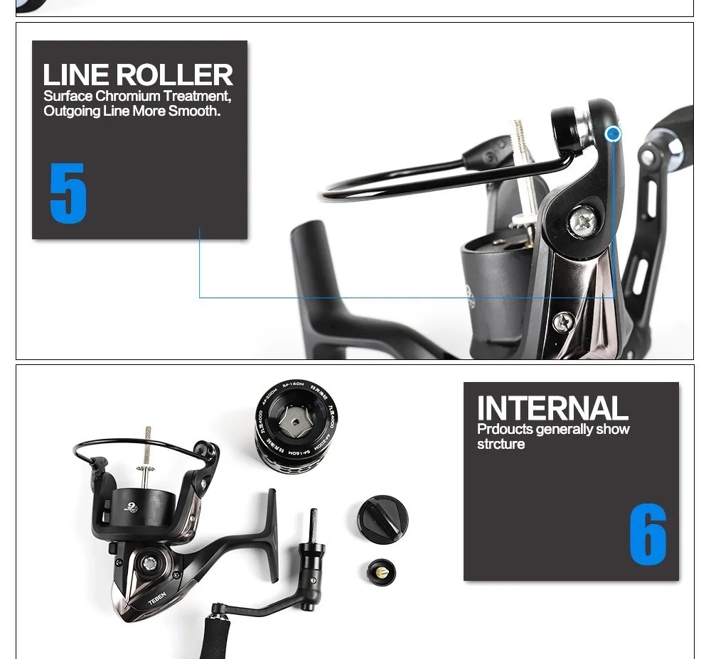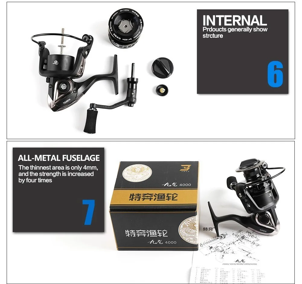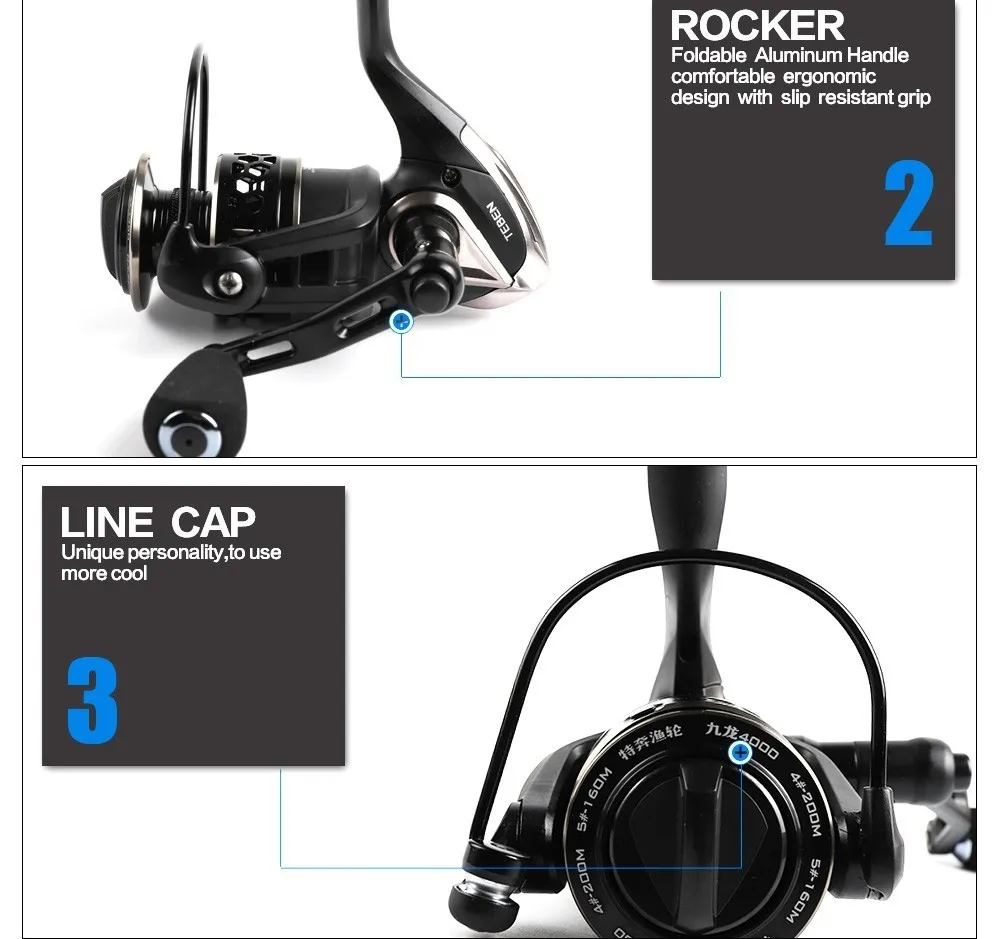 1. Los componentes sellados resisten el arrastre sellado de agua y suciedad, el carrete, el embrague unidireccional y el cuerpo de feselage totalmente melal.