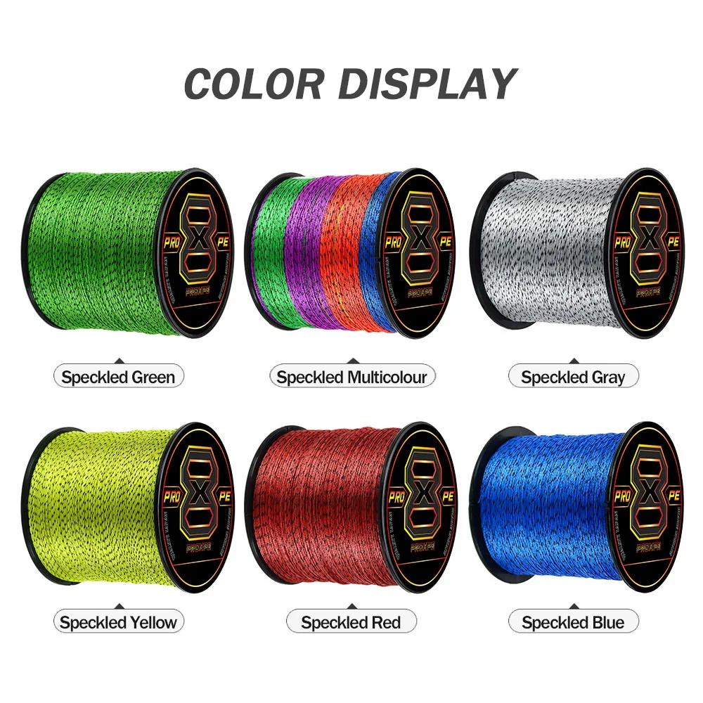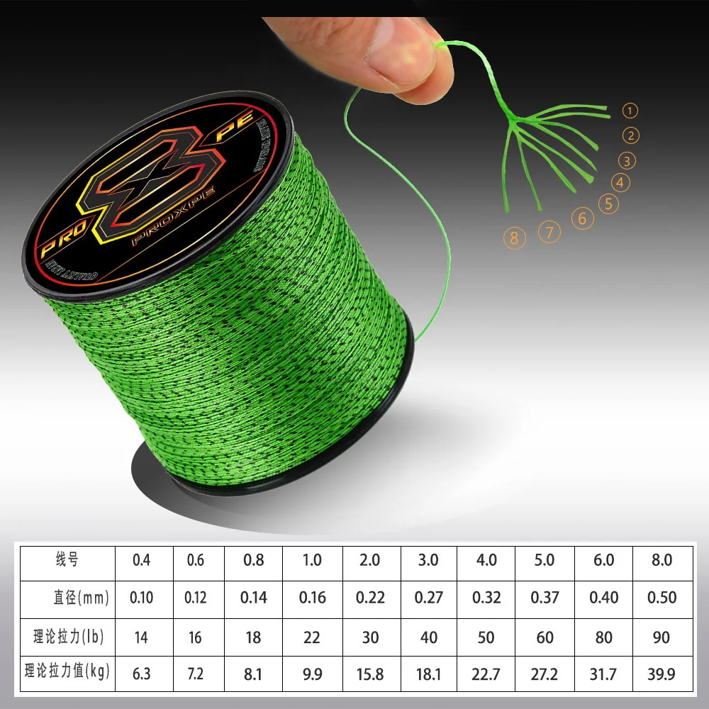 Línea de PE de 8 hebras, material de Japón, construcción trenzada única, hecha de fibras de PE de ultra alta resistencia