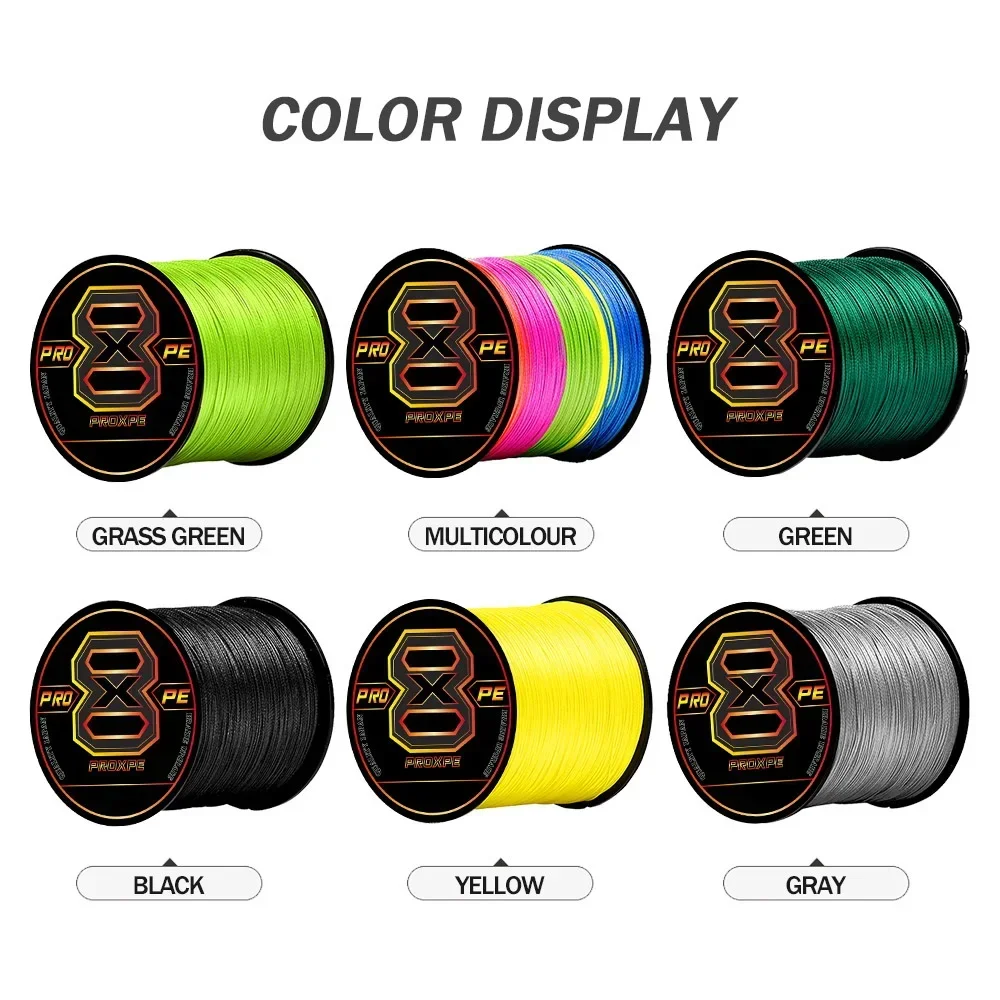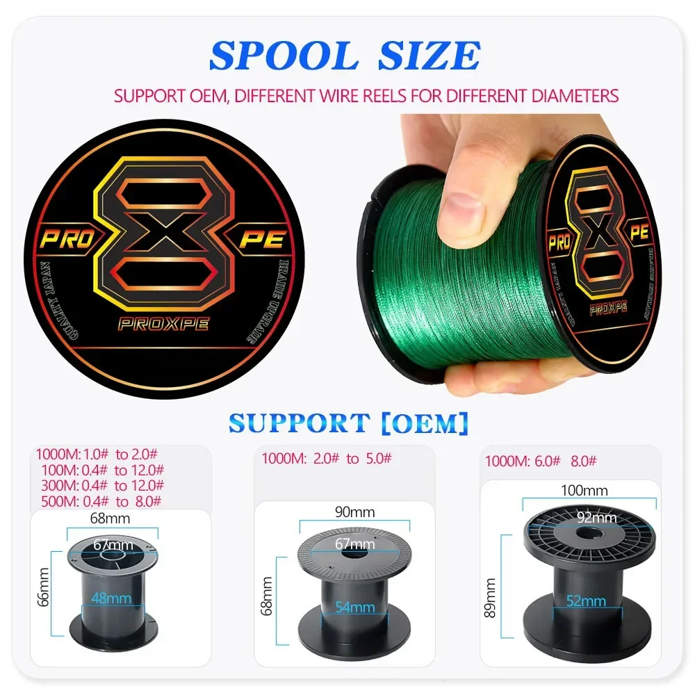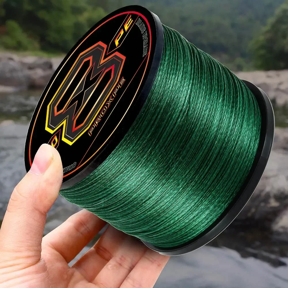 Línea de PE de 8 hilos, material de Japón, construcción trenzada única, hecha de fibras de PE de resistencia ultraalta