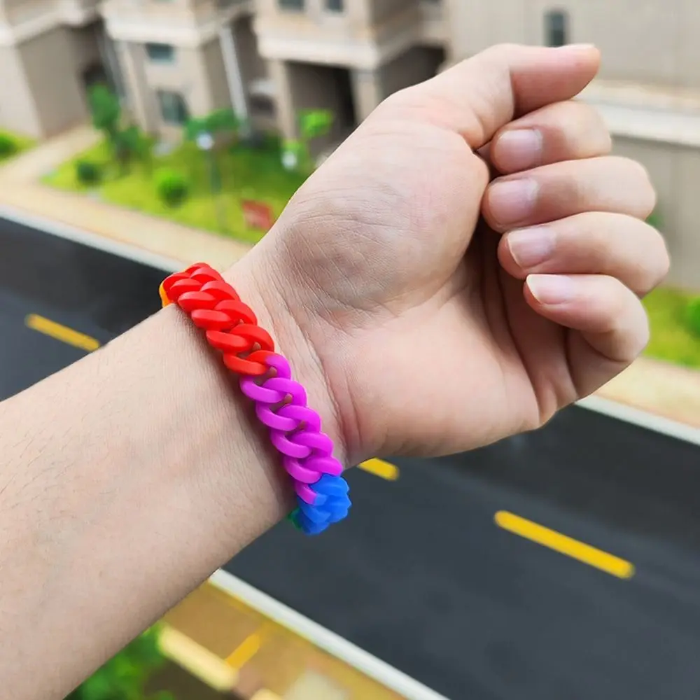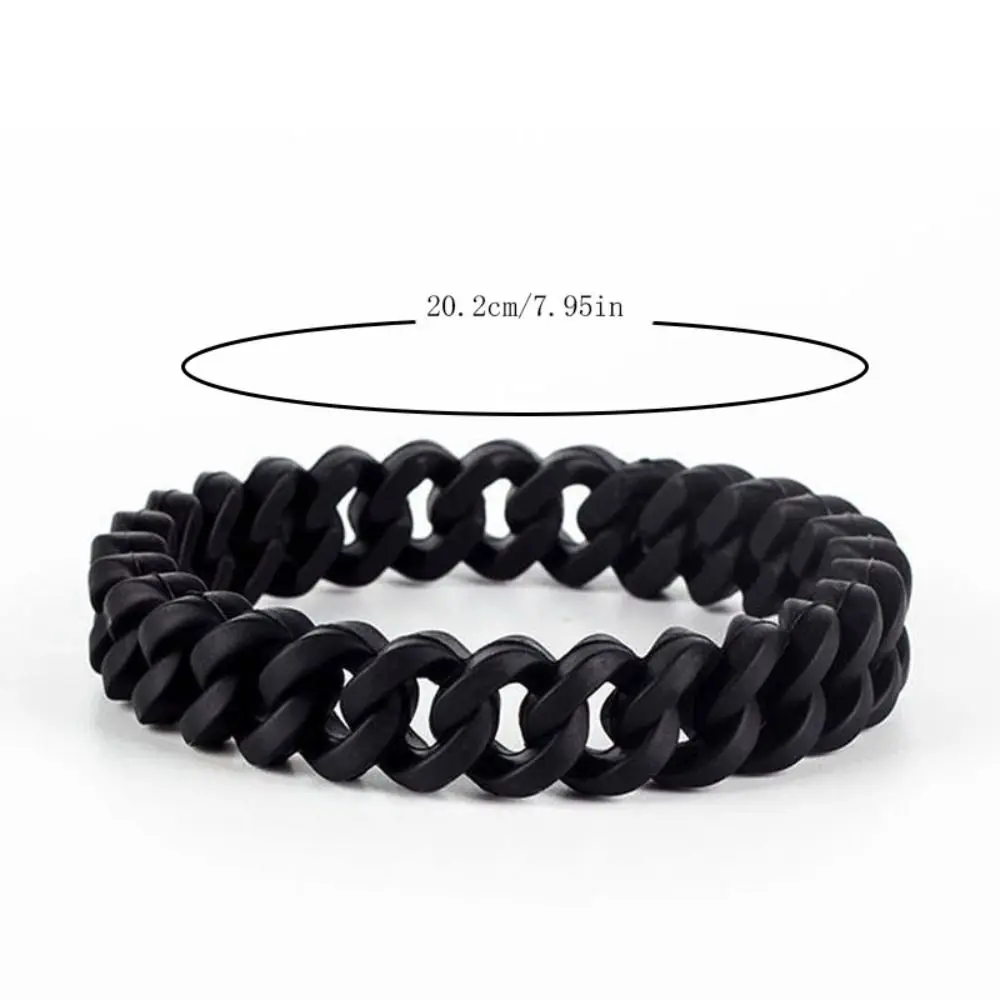 Material: silicona Tamaño: 20,2 cm (7,95 pulgadas) Estilo: diseño moderno, agradable y popular Ocasión: aniversario, citas, regalo, paquete de fiesta incluido: Pulseras de 1 pieza Especificaciones: diseño simple, informal y a la moda. Hecho de silicona, cómodo de llevar. Es adecuado para ropa deportiva o para muchas otras ocasiones.