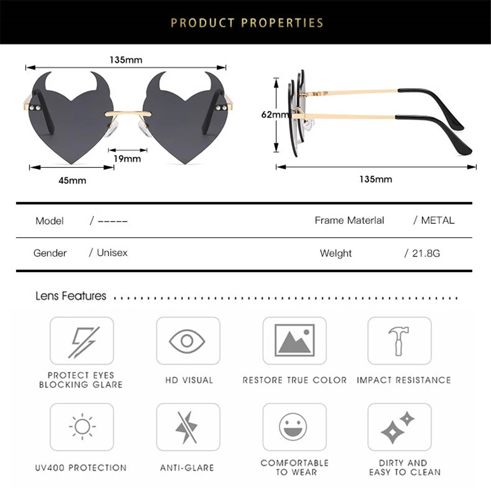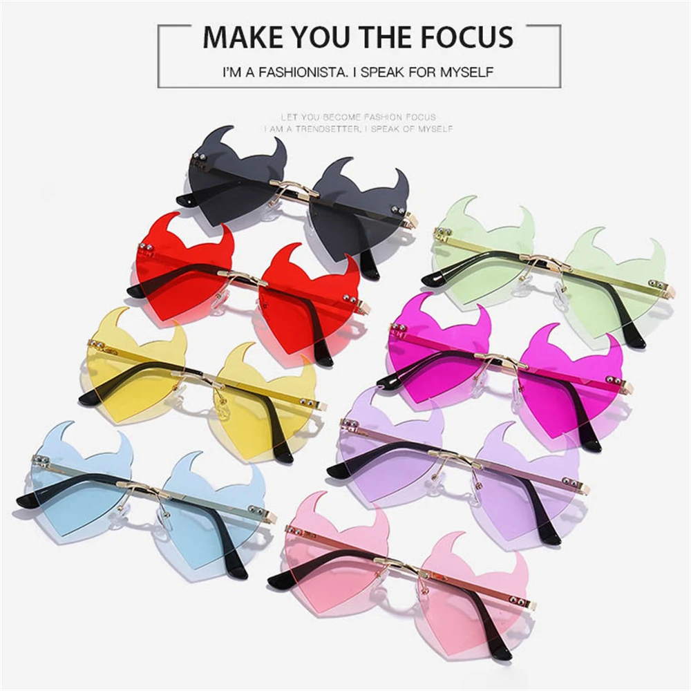 Nombre del producto: gafas de sol con forma de corazón y oreja de diablo