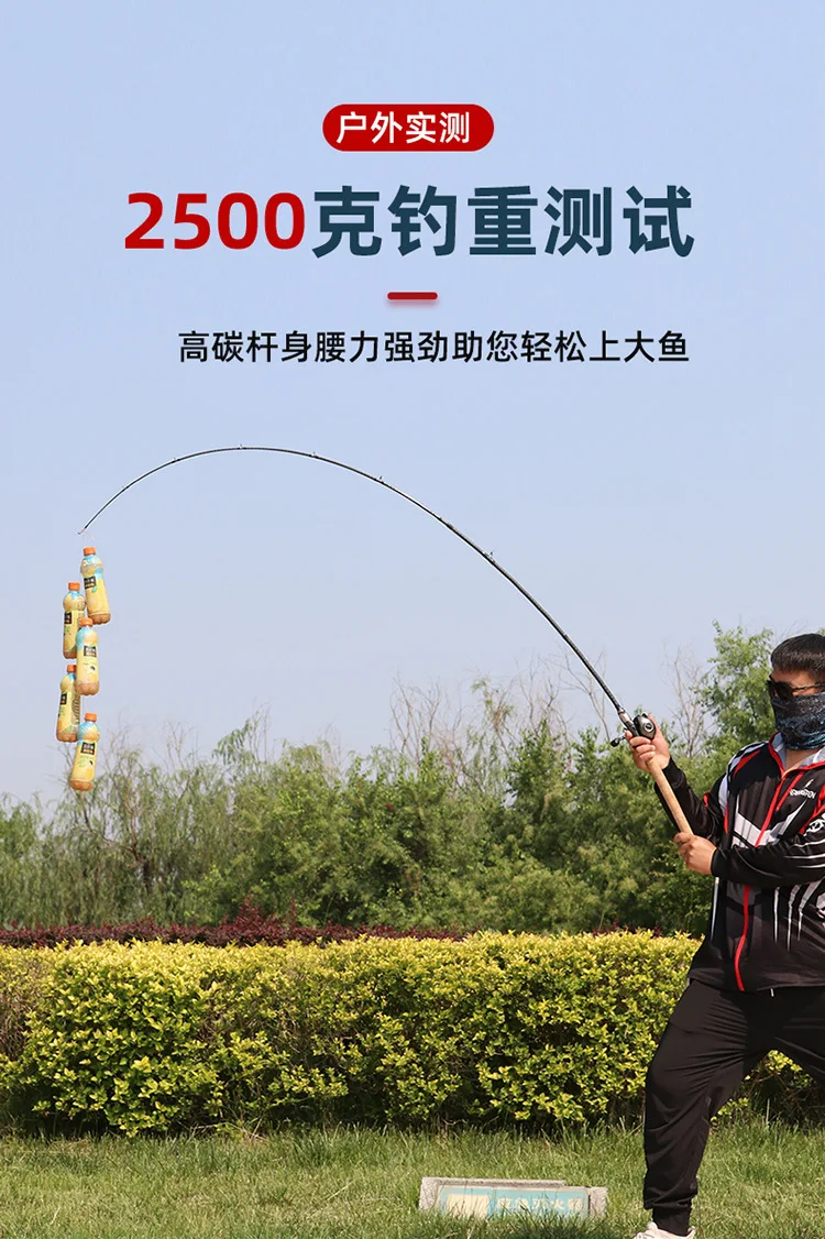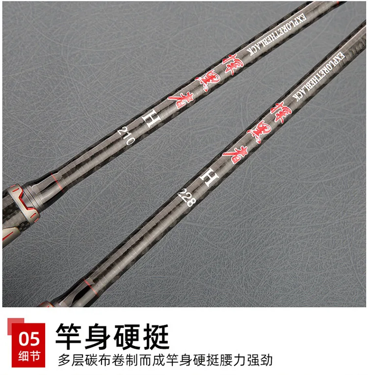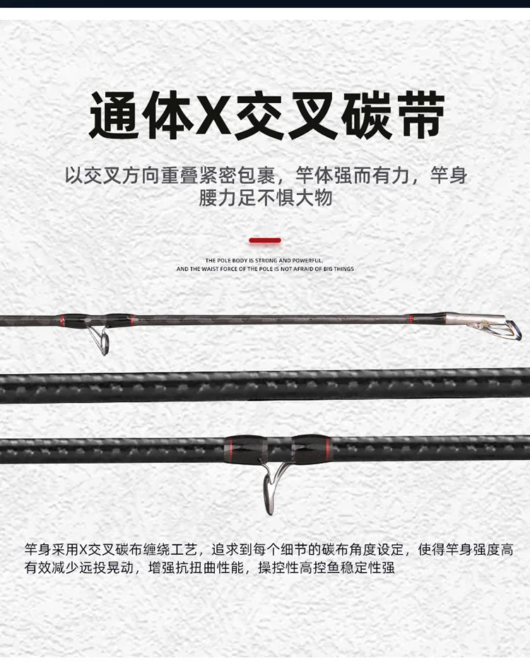 Punta de cabeza de serpiente, diámetro ZZ26 Caña de pescar giratoria de alto carbono, potente señuelo envuelto en X, 2,8mm H, 2,1 m, 2,28 m, 2,4 m, 7000g, sin carrete