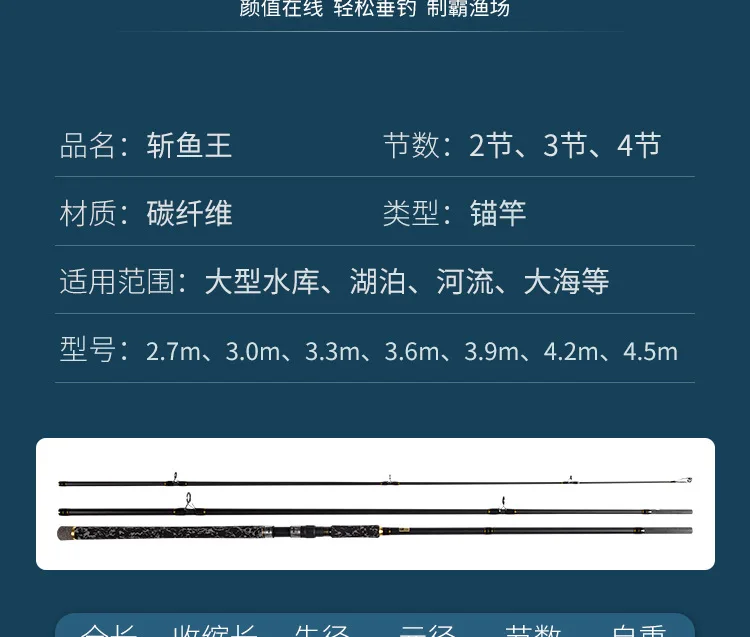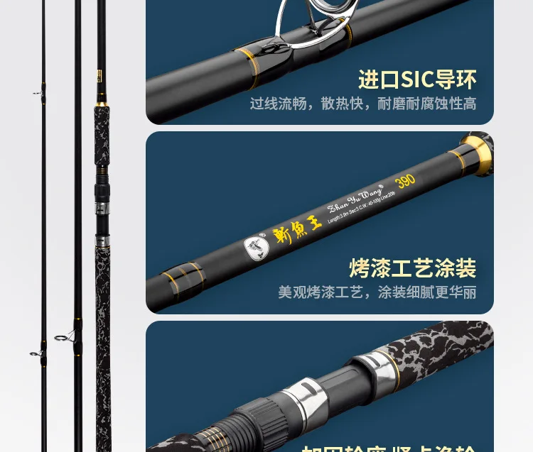 Punta ZZ234, cabeza de serpiente de 3mm, 3 secciones, anillos SIC, 6000g, varilla de surfcasting de fibra de carbono de carga segura, 2,7 m, 3m, 3,3m, 3,6m, 3,9m, 4,2m, 4,5m