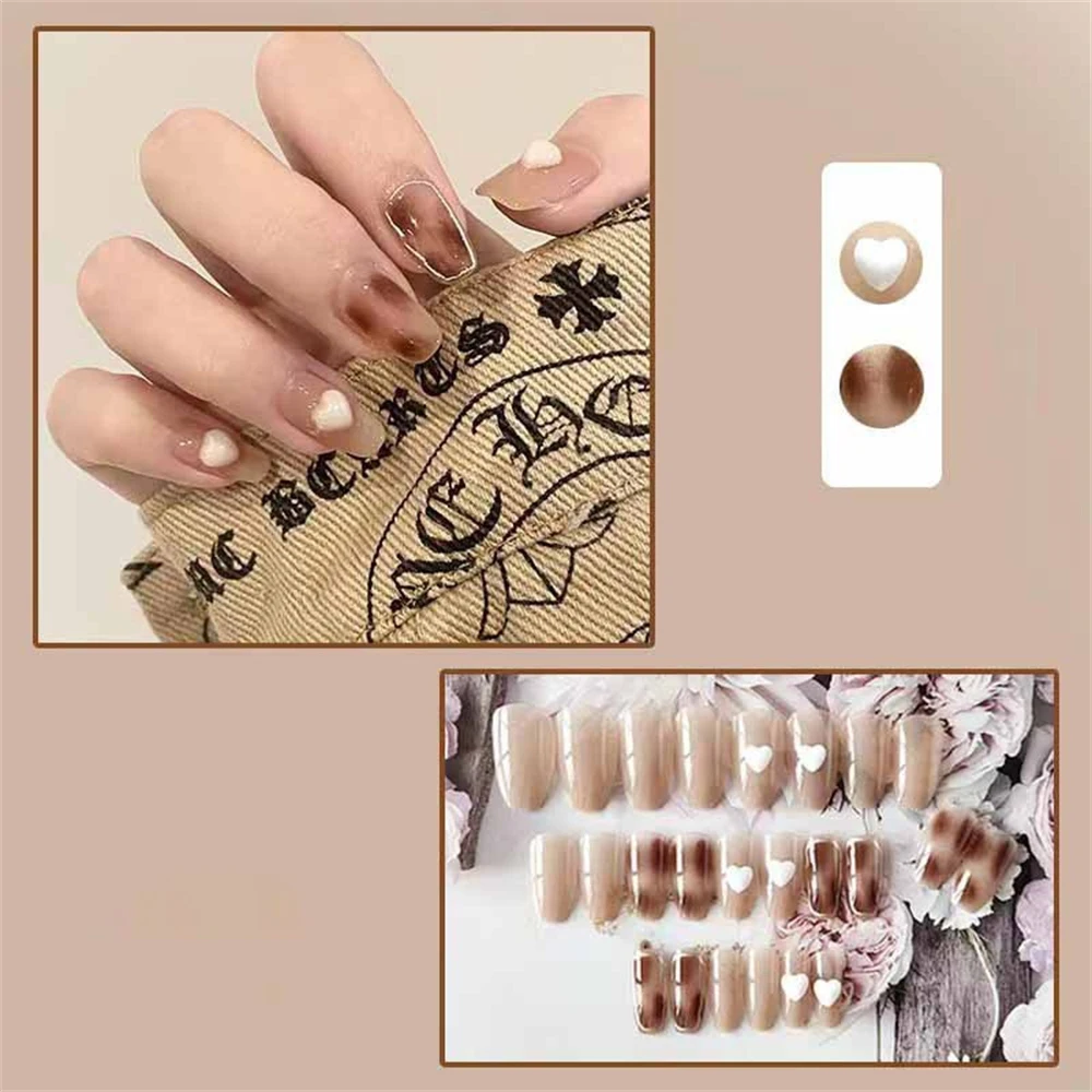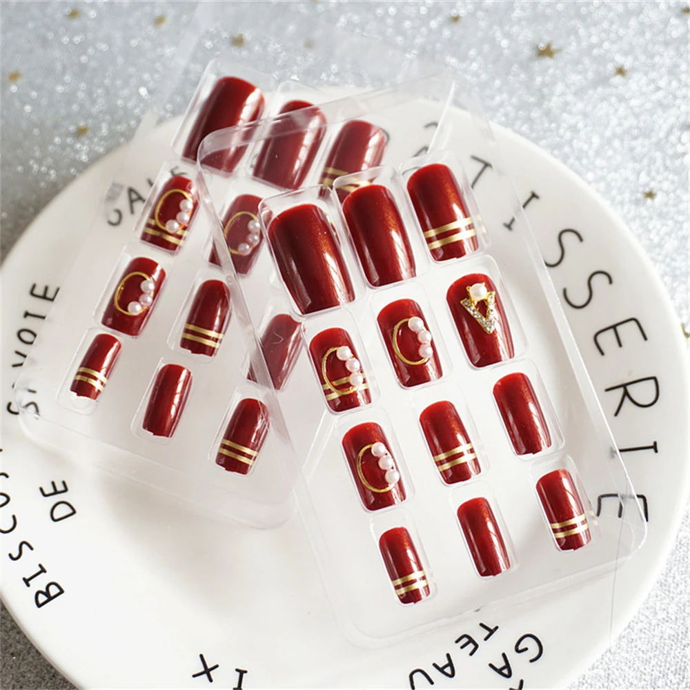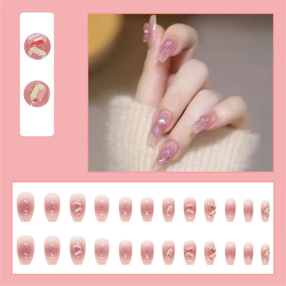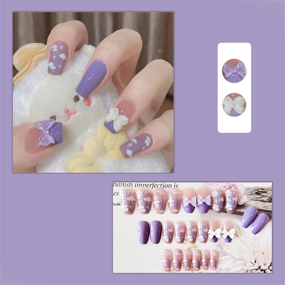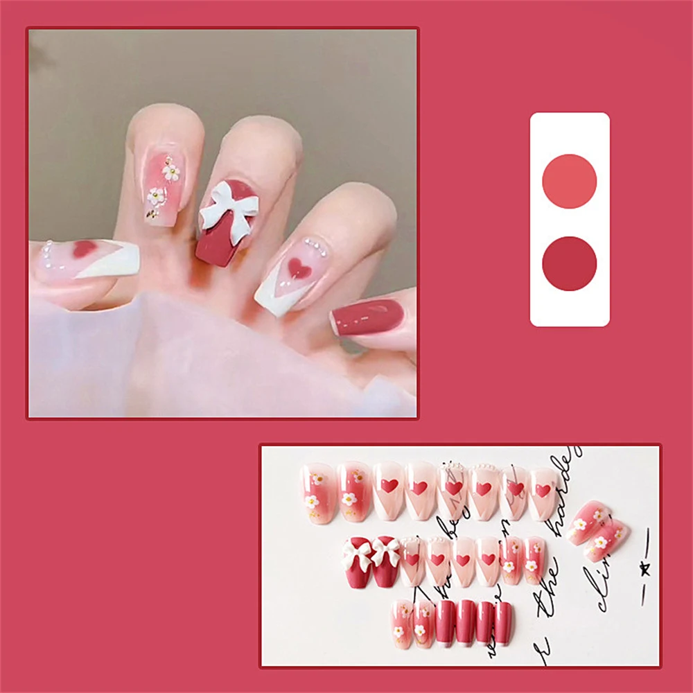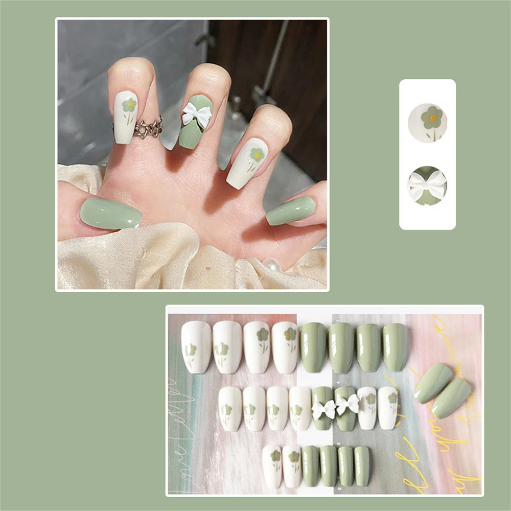 Puntas de Arte de uñas falsas de 24 piezas con diseño de arco de perlas con parche de mejora extraíble palo terminado en las uñas