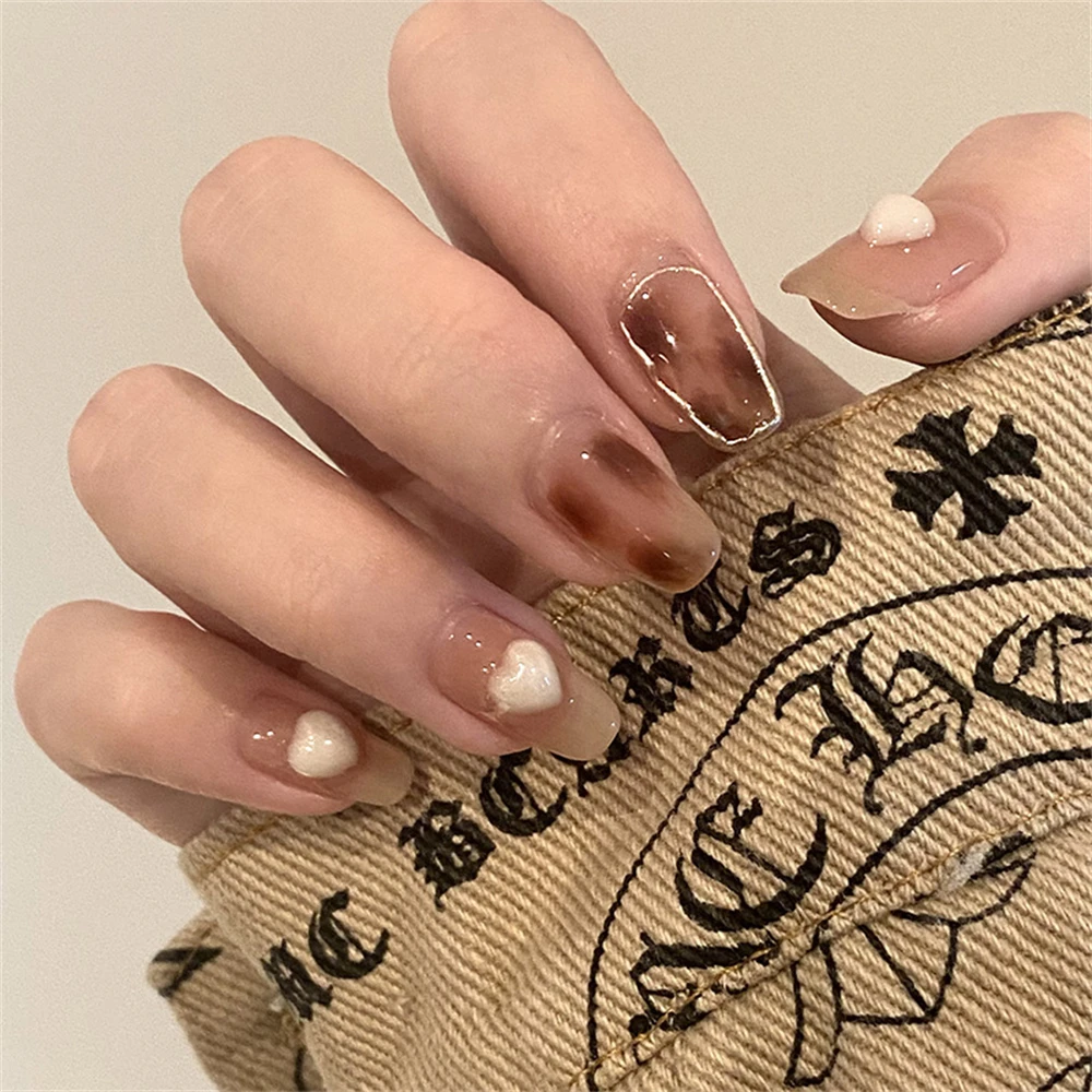 Puntas de Arte de uñas falsas de 24 piezas con diseño de arco de perlas con parche de mejora extraíble palo terminado en las uñas