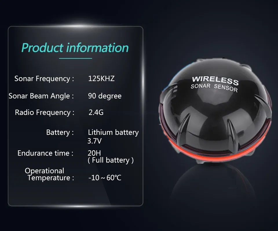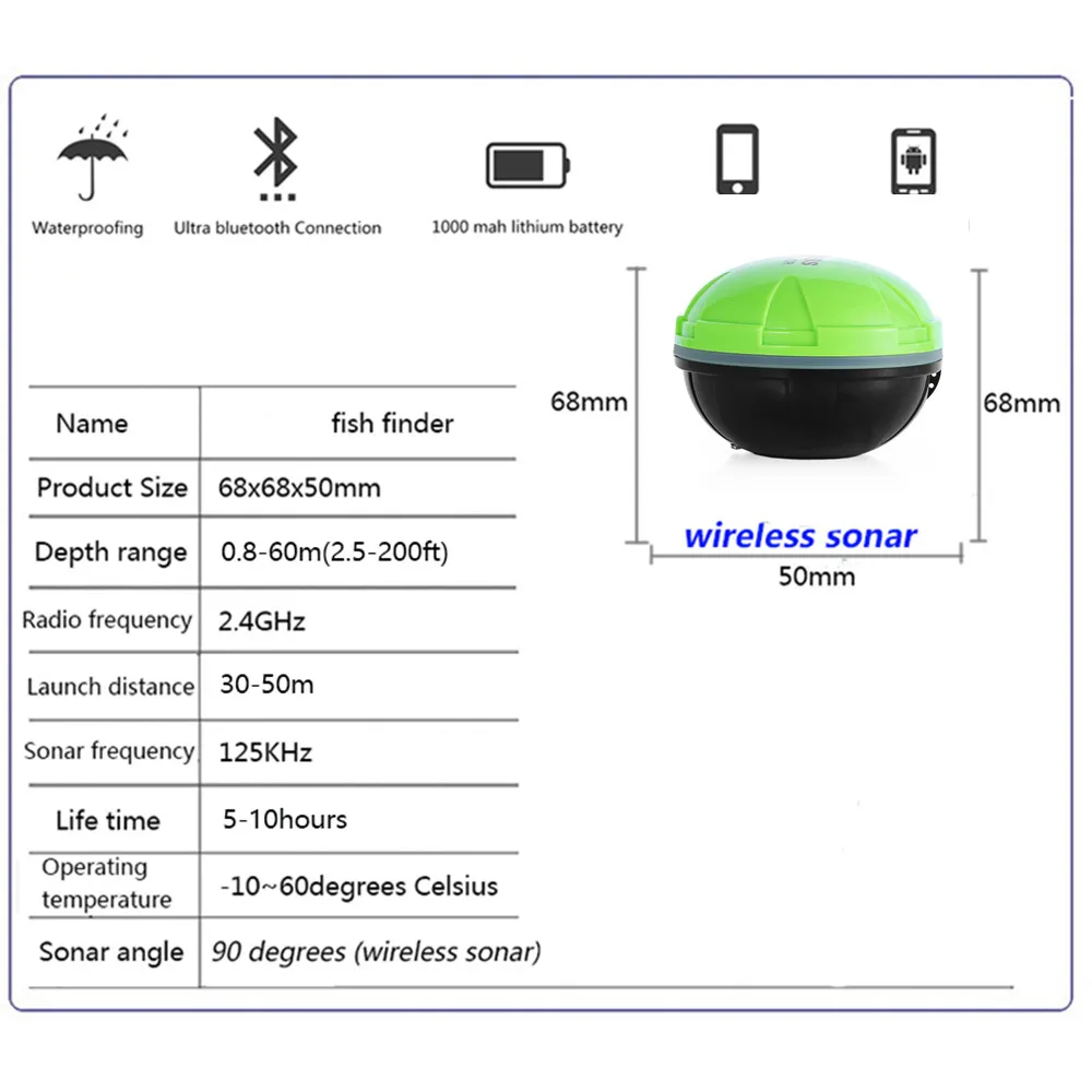 Buscador de peces inalámbrico Bluetooth Sonar inteligente, buscador de peces portátil de 48m/160 pies, equipo de pesca al aire libre para IOS y Android