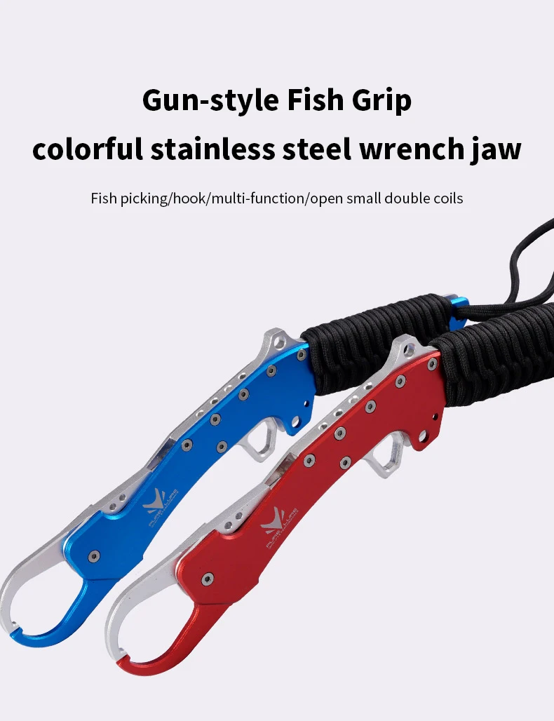 Herramientas de pesca PURELURE, pinza de labios de pesca de acero inoxidable, empuñadura de agarre de cordón ajustable con cuerda de retención, aparejos, herramientas para peces