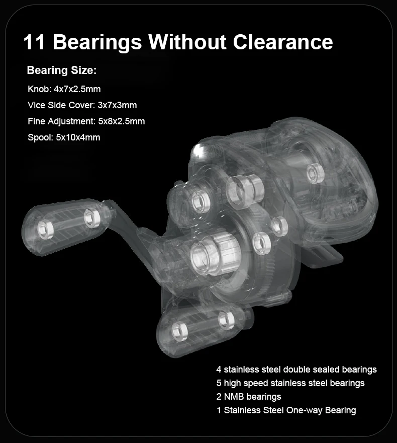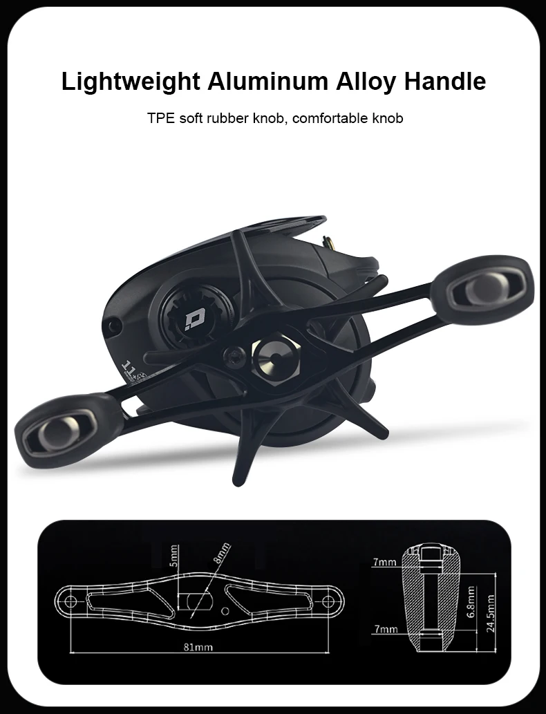 Línea de nailon y carbono: menos de 12 lb (después de enrollarse completamente con una línea de carbono de 12 lb durante 72 horas, el carrete aún se puede usar normalmente)