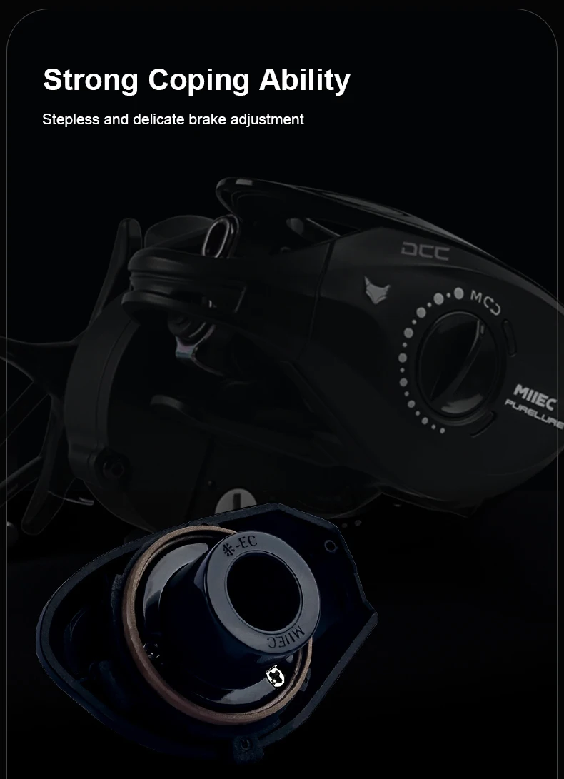1.Ajuste del tamaño del freno MIIEC: a través del tamaño del ícono indicador en el costado del carrete de pesca, gire la perilla del freno para ajustar infinitamente la fuerza de frenado para satisfacer diferentes necesidades.El ajuste de freno infinitamente delicado tiene una fuerte capacidad correspondiente.