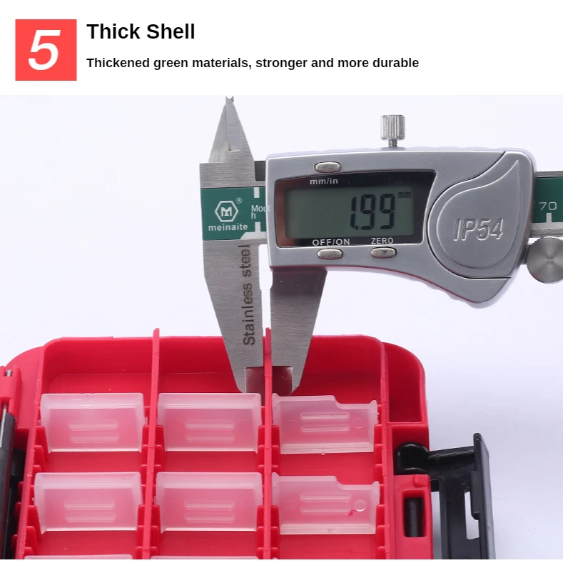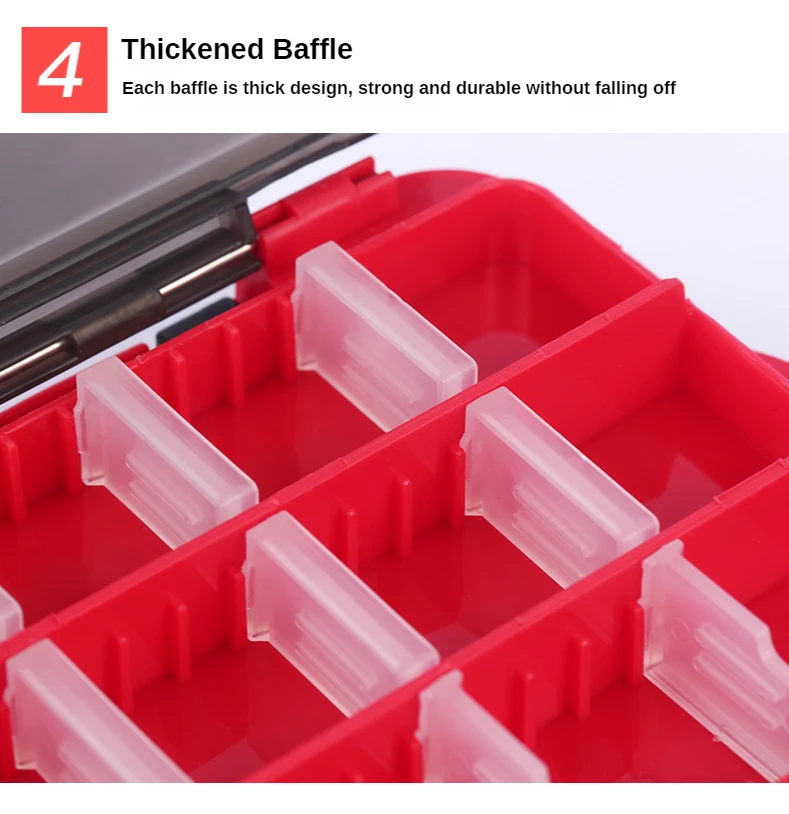 Identificación rápida: El material transparente pero duradero le permite ver el contenido de su caja de señuelos sin tener que desenganchar y abrir la tapa, haciendo que sea rápido y fácil encontrar y cambiar los cebos en cualquier momento.