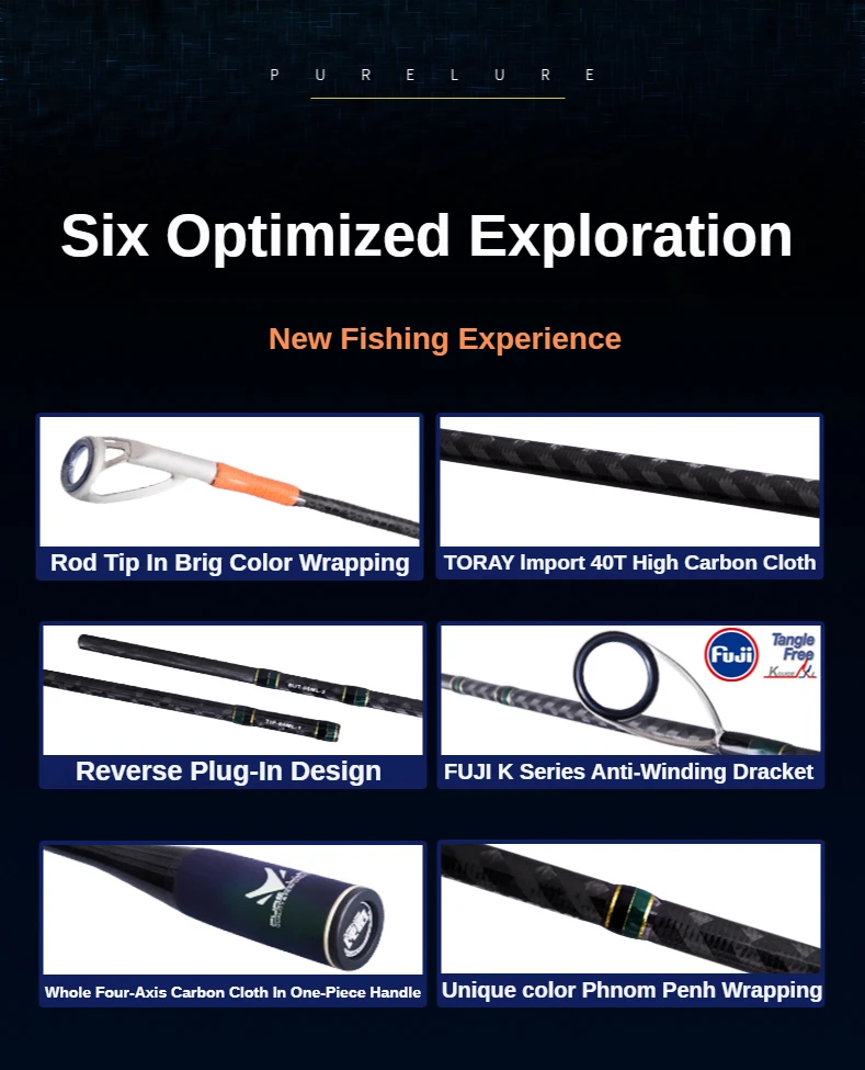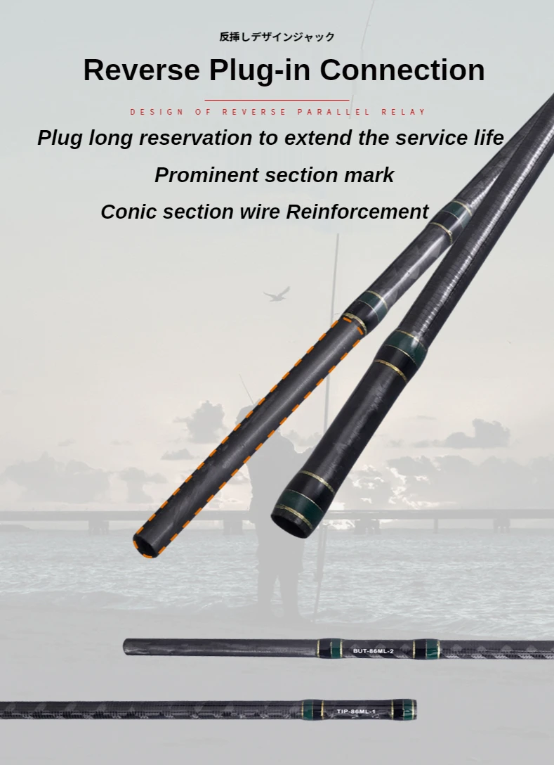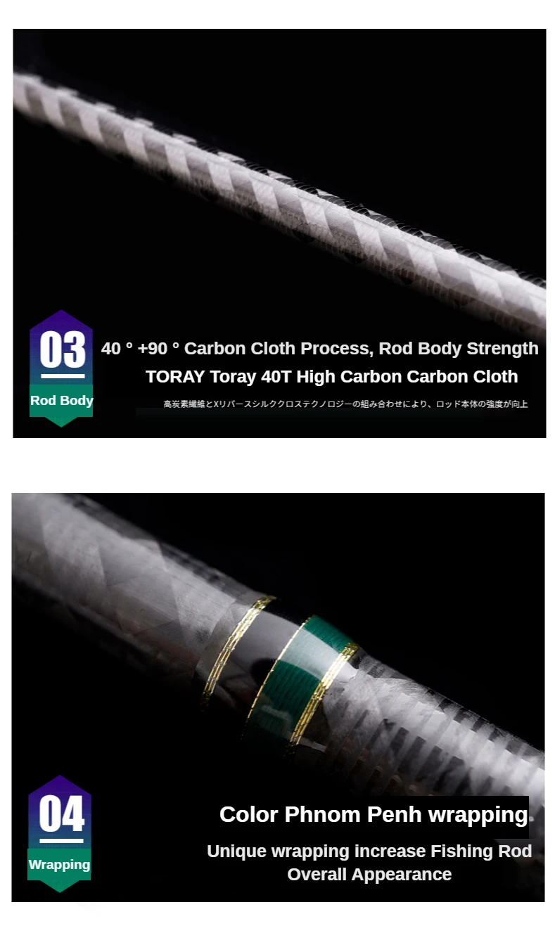 3. Cuerpo de la varilla: TORAY Toray 40T tela de alto carbono, proceso de tela de carbono 40 ° + 90 °, fuerza del cuerpo de la varilla.