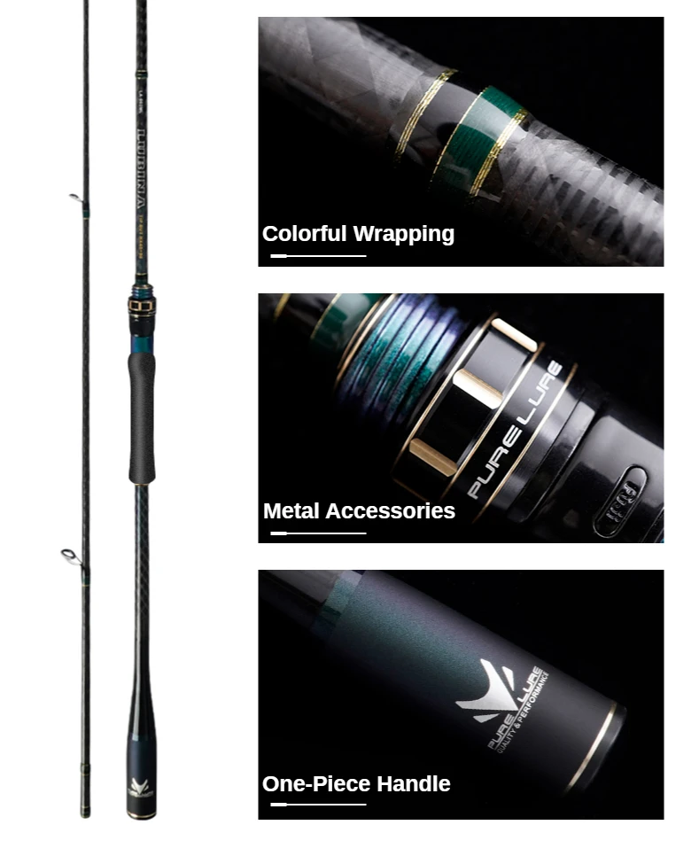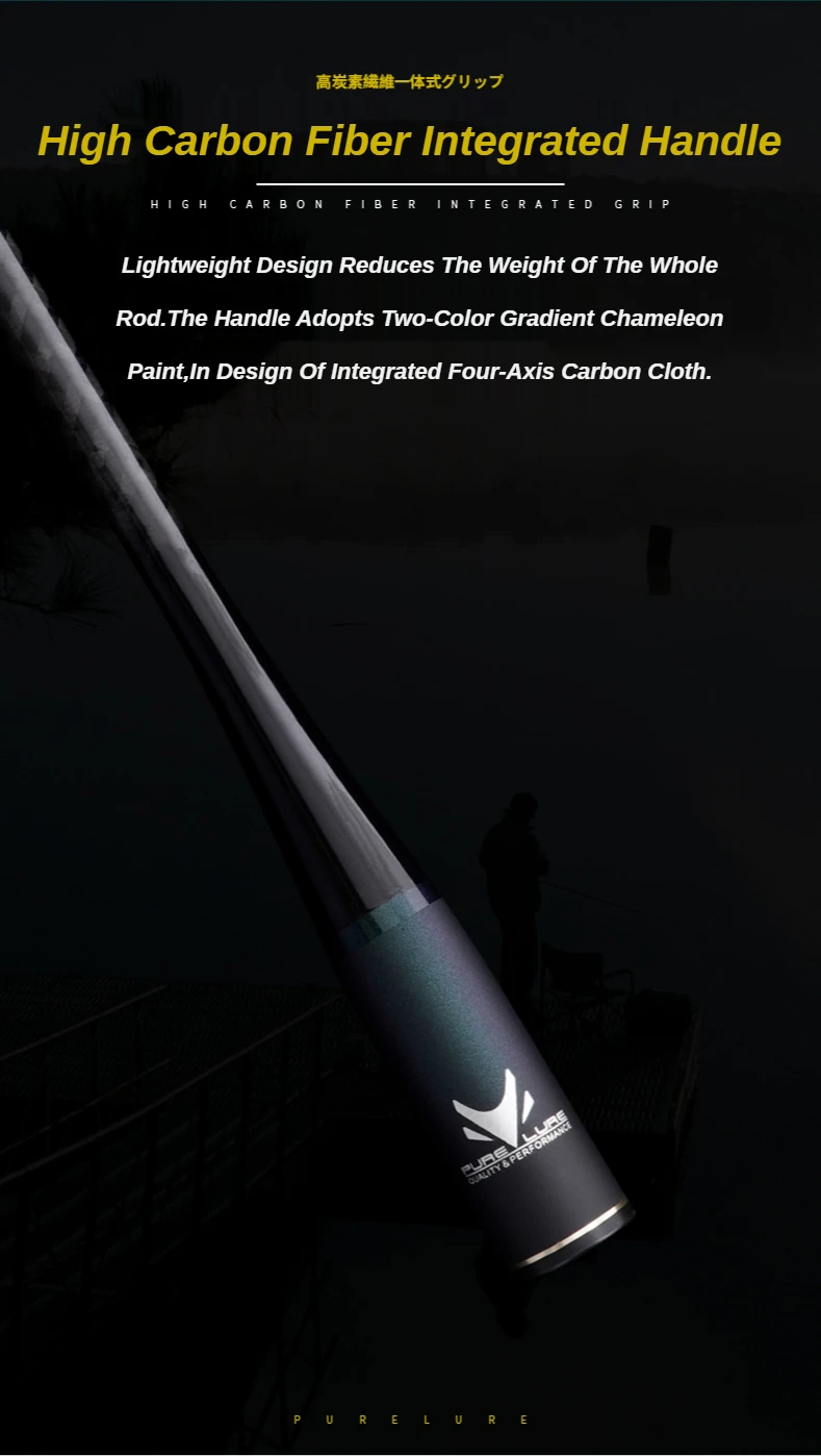 El diseño ligero reduce el peso de toda la varilla. El mango adopta pintura camaleónica degradada de dos colores, en diseño de tela de carbono integrada de cuatro ejes.