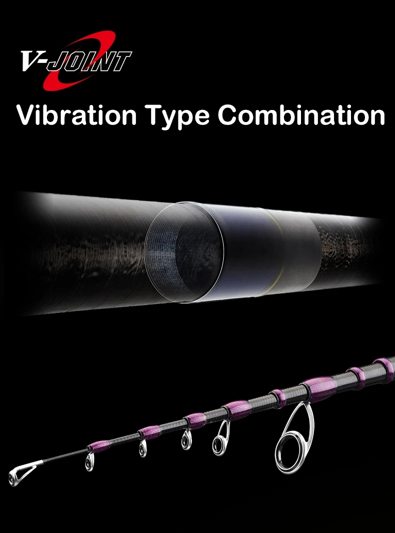 Con la fibra híbrida, la dureza del material del cuerpo se mejora completamente, y el ángulo de corte único se utiliza para lograr la transición entre las secciones, la transferencia de la fuerza desde la columna vertebral de la caña a través de la punta de la caña al lanzar señuelos. Al reducir aún más la cantidad de resina en comparación con SVF Carbon VF, la varilla logra un alto nivel de ligereza, sensación sensible y ofrece un rendimiento abrumador.