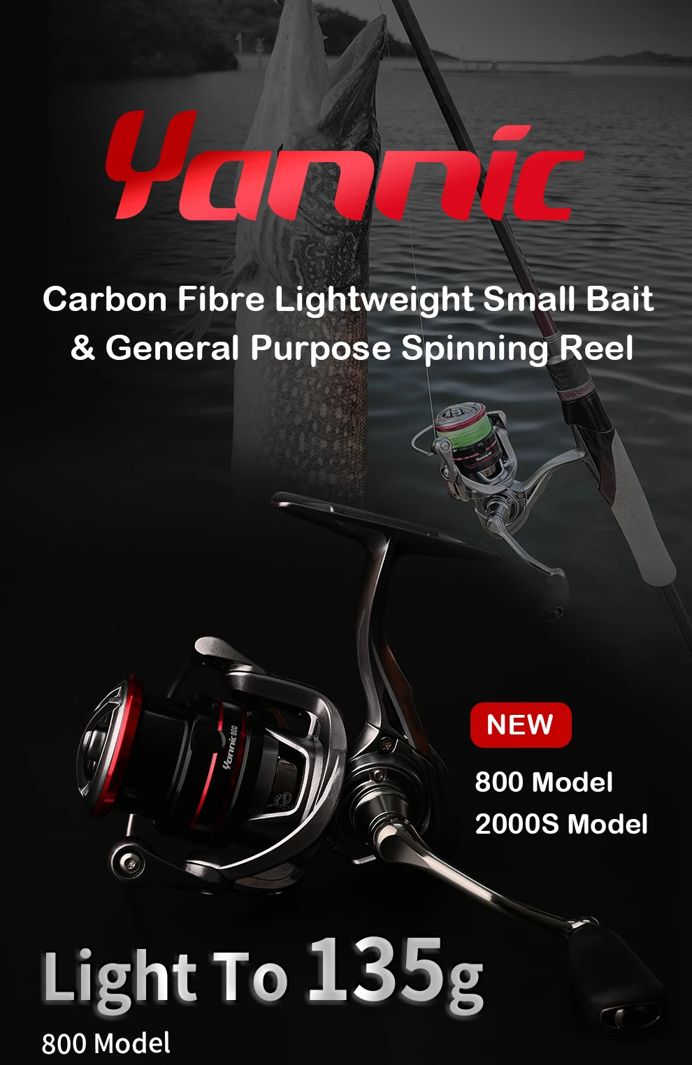 Cebo pequeño ligero de fibra de carbono y carrete giratorio de uso general