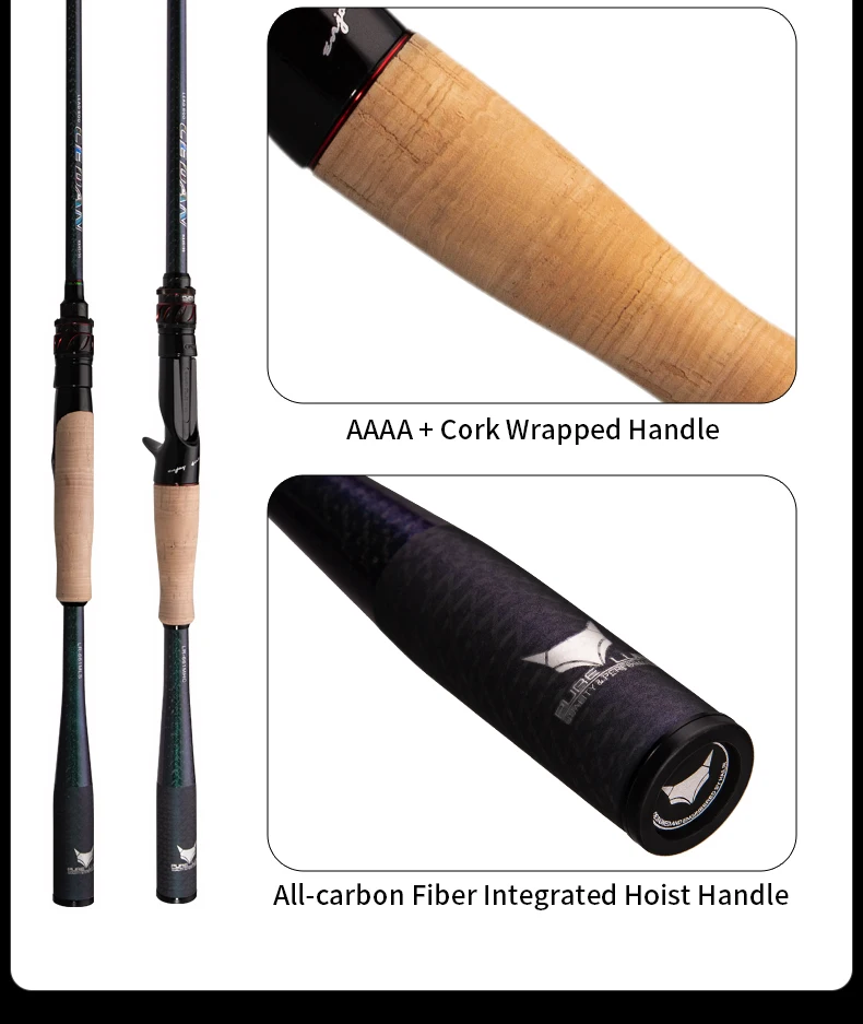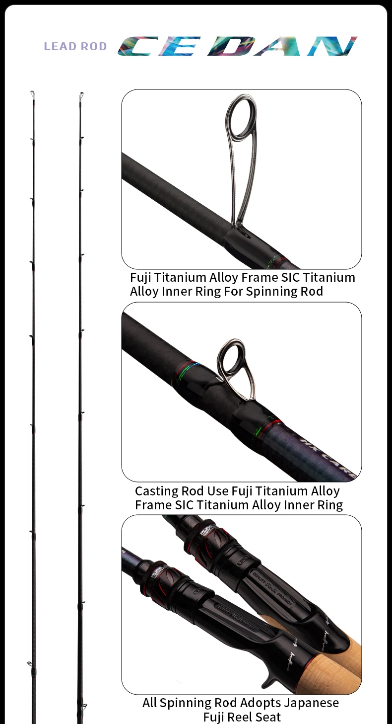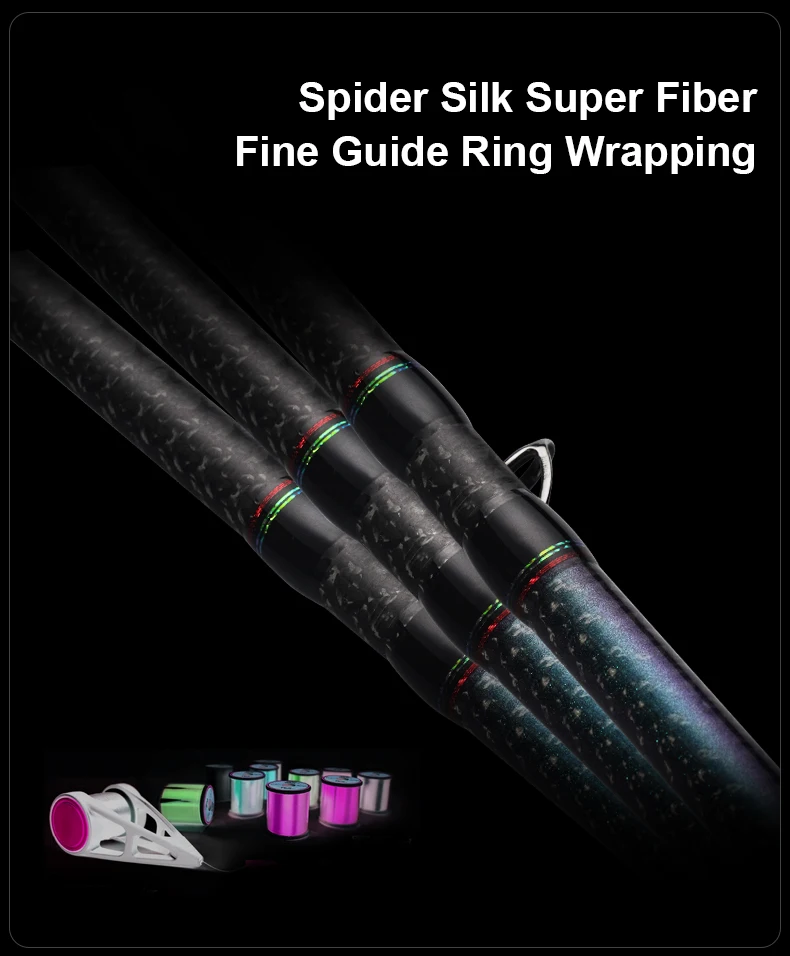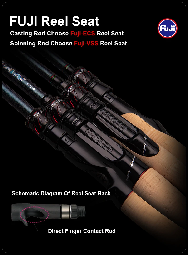 Gracias al diseño que está más en línea con la función práctica, el usuario puede tocar directamente el cuerpo principal de la caña de pescar mientras sostiene el asiento del carrete, de modo que la vibración de la caña se pueda transmitir directamente al nervio del dedo.