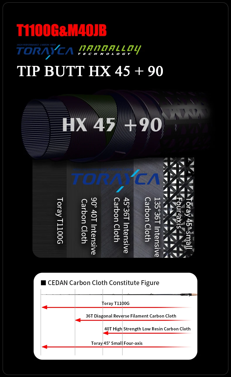 Para maximizar la sensibilidad de amplificación, con el sólido soporte técnico proporcionado por el proceso HX45 +90, los ingenieros decidieron utilizar materiales para que aproveche cada ventaja.Toray T1100G tiene buena tenacidad, el alto carbono 40T proporciona soporte de resistencia, el cable inverso con un ángulo incluido de 90° proporciona fuerza de tracción oblicua y la capa exterior es 45° Pequeño de cuatro ejes hasta la parte superior para formar un refuerzo de refuerzo.