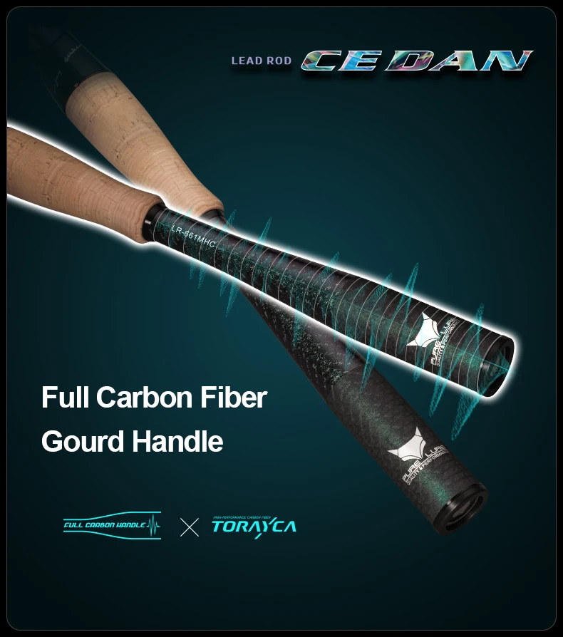 El mango de calabaza de fibra de carbono completa muestra el cuerpo de la varilla como parte del agarre y la vibración desde la posición de la punta no se atenúa, por lo que la vibración de la varilla se puede sentir más claramente.