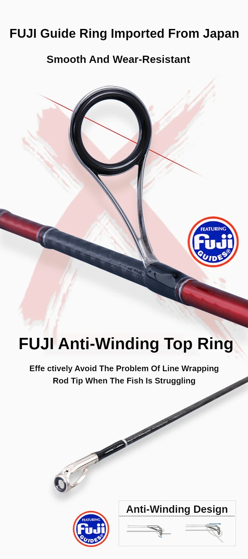 1. Guía Fuji importada de Japón, guía superior de la serie de anillos Alconite, suave, resistente al desgaste, antibobinado, no daña, resistencia a la corrosión por agua de mar.