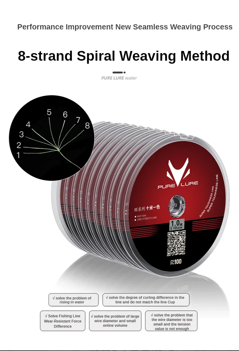 PURELURE-línea de pesca trenzada de PE, multifilamento de 8 hebras, alta resistencia, suave, distancia de lanzamiento lejano, 250m, 1000m
