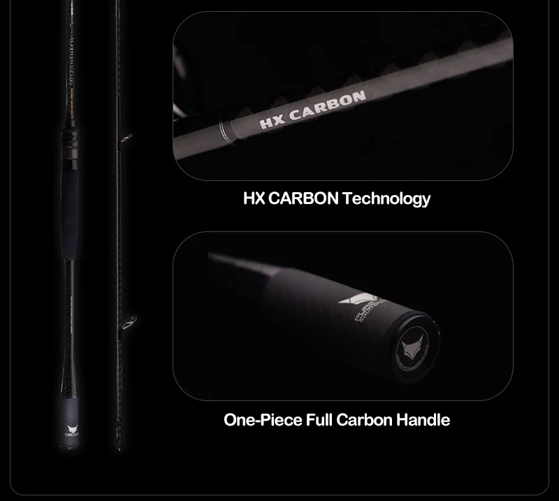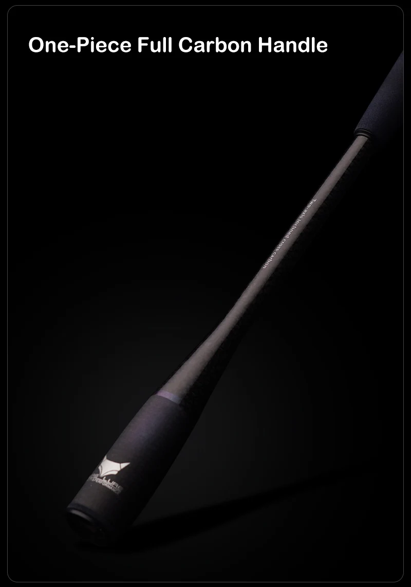 El mango de calabaza de fibra de carbono completa muestra el cuerpo de la varilla como parte del agarre y la vibración desde la posición de la punta no se atenúa, por lo que la vibración de la varilla se puede sentir más claramente.
