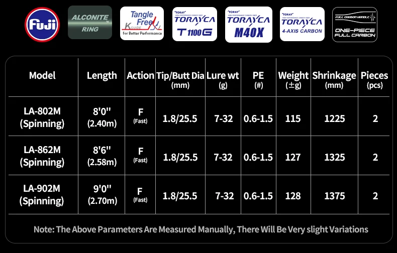 LA-862M, Longitud: 2,58 m, Tipo: Varilla giratoria, Peso del señuelo: 7-32; Peso de la línea: PE0.6-1.5#;Acción:Rápido;Potencia:Mediana,Piezas:2 uds;