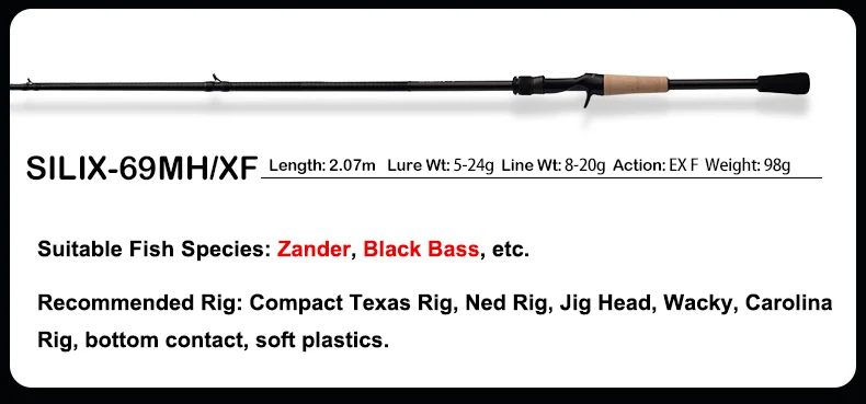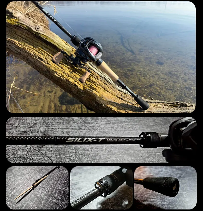 Hemos diseñado la serie SILIX-T para soportar cargas más altas distribuyendo uniformemente fuerzas cuando se está estresando el trozo. El cono único del trozo en blanco de la serie SILIX-T mejora la precisión del lanzamiento y es una combinación perfecta para los pescadores que exigen una caña con alta sensibilidad. Hemos equipado el SILIX-T con un tren de microguide FUJI Titanium Torzite completo. El SILIX-T es una herramienta de precisión perfecta para largas sesiones de pesca en todas las aguas.