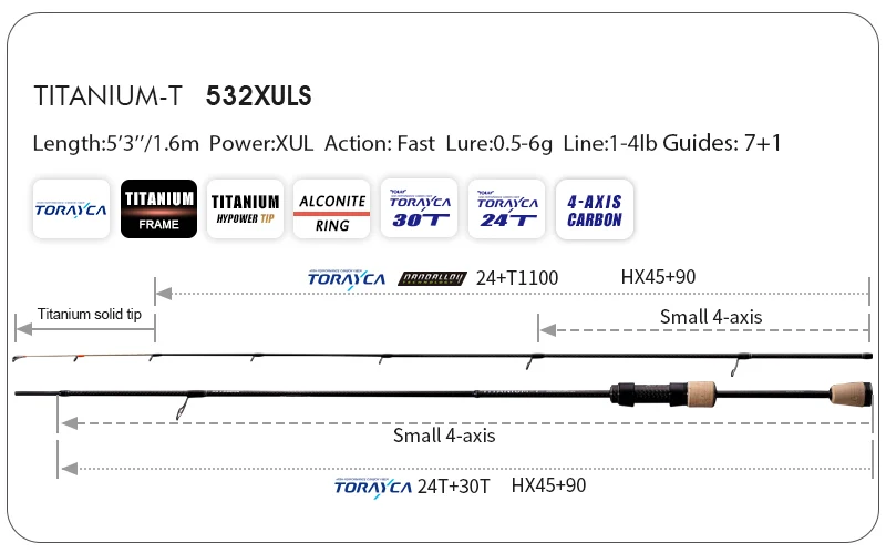 (Tipo: Fundición, Longitud: 5'3", 1,6 m, Acción: Rápido, Potencia: Extra ultraligero, Peso del cebo: 0,5-6 g, Peso de la línea: 1-4 lb, Piezas: 2 piezas)