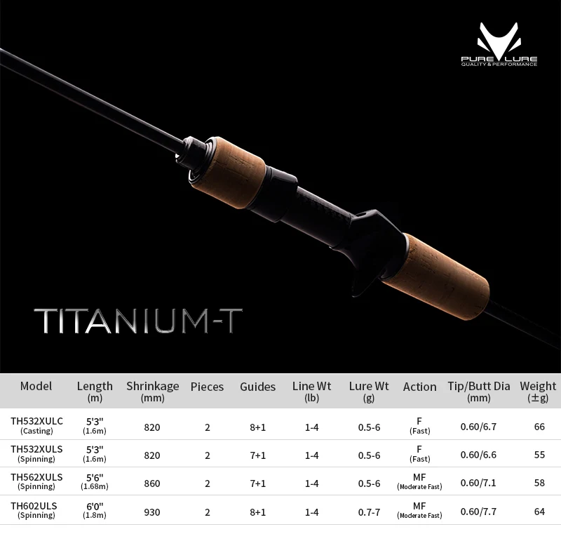 La longitud corta fue desarrollada específicamente para el lanzamiento con una sola mano para cuartos reducidos y espacios pequeños.Mediante el uso de la punta de la caña de aleación de titanio, hemos mejorado la capacidad de lanzamiento de nuestras cañas y los pescadores de control tienen sobre sus señuelos.La punta de titanio tiene una gravedad específica más alta en comparación con las puntas de fibra de carbono, lo que le permite ser más flexible y resistente.Estas características dan a la caña una ventaja durante el lanzamiento y la flexibilidad permite que los señuelos tengan una mejor acción.
