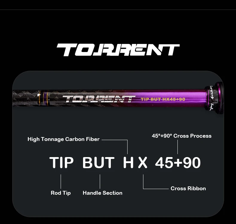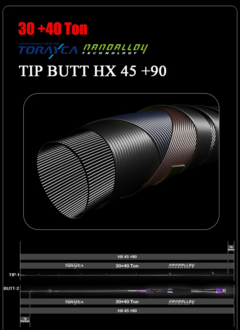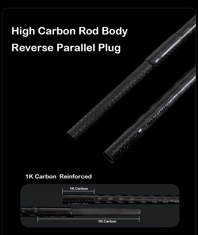 2. Tela de carbono integral de cuatro ejes en el cuerpo de la varilla, tela de carbono TORAY 30T + 40T, 45°+90° proceso cruzado bidireccional, cable inverso por dentro y por fuera.