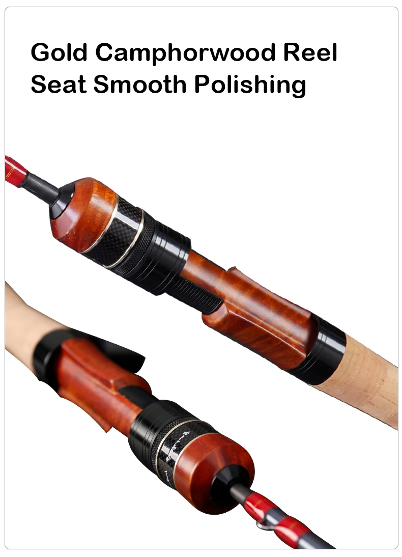 4.Gold camphor wood reel seat, wooden reel seat reinforced metal winding check, tightly locked fishing reel