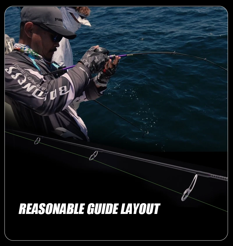 Un diseño de anillo guía más riguroso resalta plenamente la dureza de la caña, sin miedo a los tirones de peces grandes.