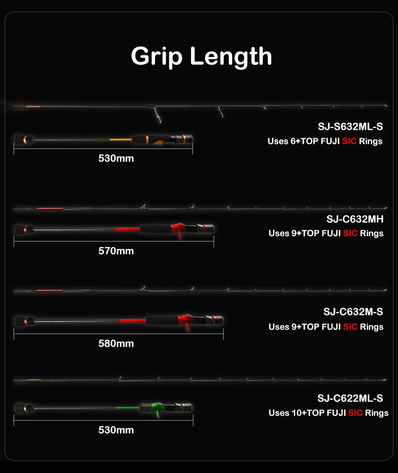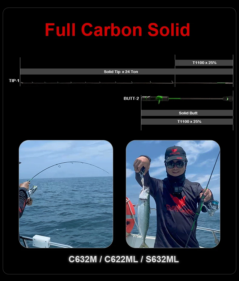 Solo C632MH es Tubular Tip Butt, acción rápida.