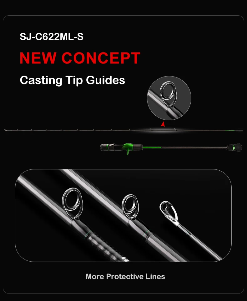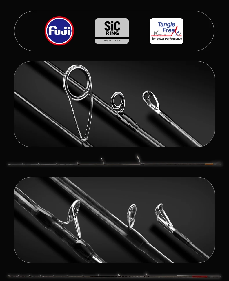 La caña adopta el concepto de diseño. El tacto ligero ayuda a sentir los peces claramente. La reacción rápida aumenta la estimulación de la pesca.