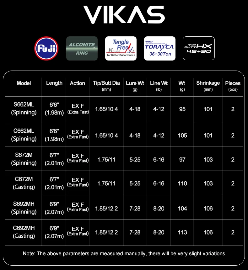 PURELURE VIKAS-caña de pescar giratoria Fuji Ring F XF, señuelo de acción, asiento de carrete Fuji de alto carbono, caña de pescar para Lucio