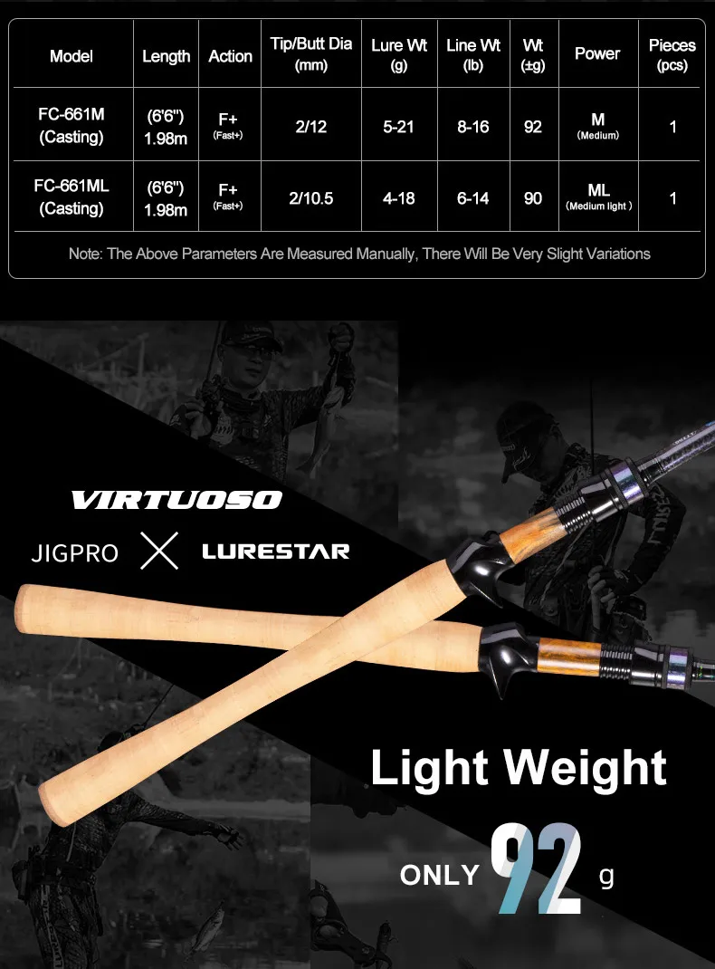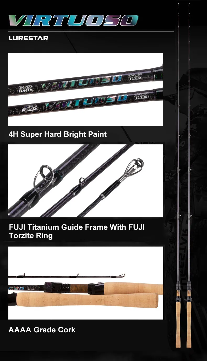 PURELURE VIRTUOSO 1-delige hengel Spinning Baitcasting hengel 6.1ft ML M 1 sectie Hoge gevoeligheid Carbon hengel Bass Competitie