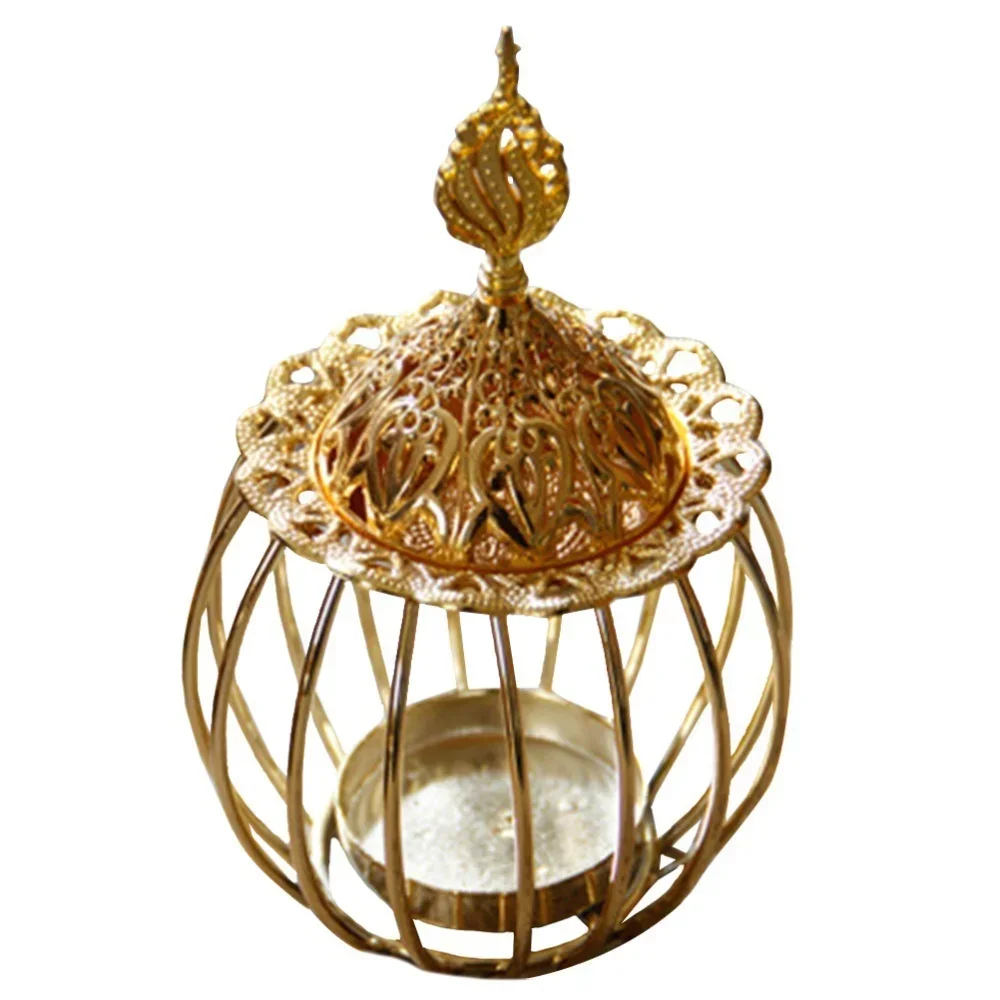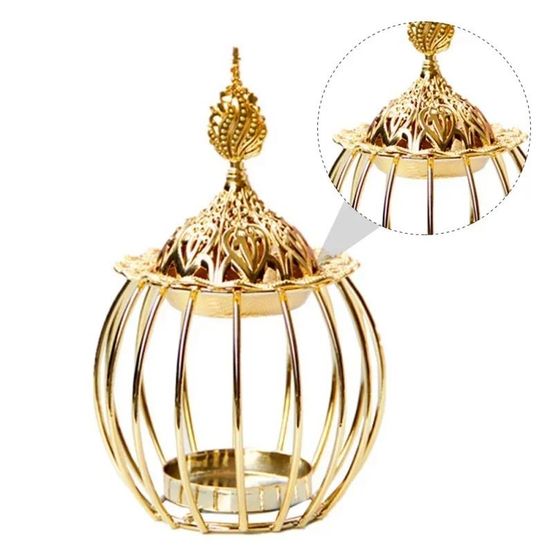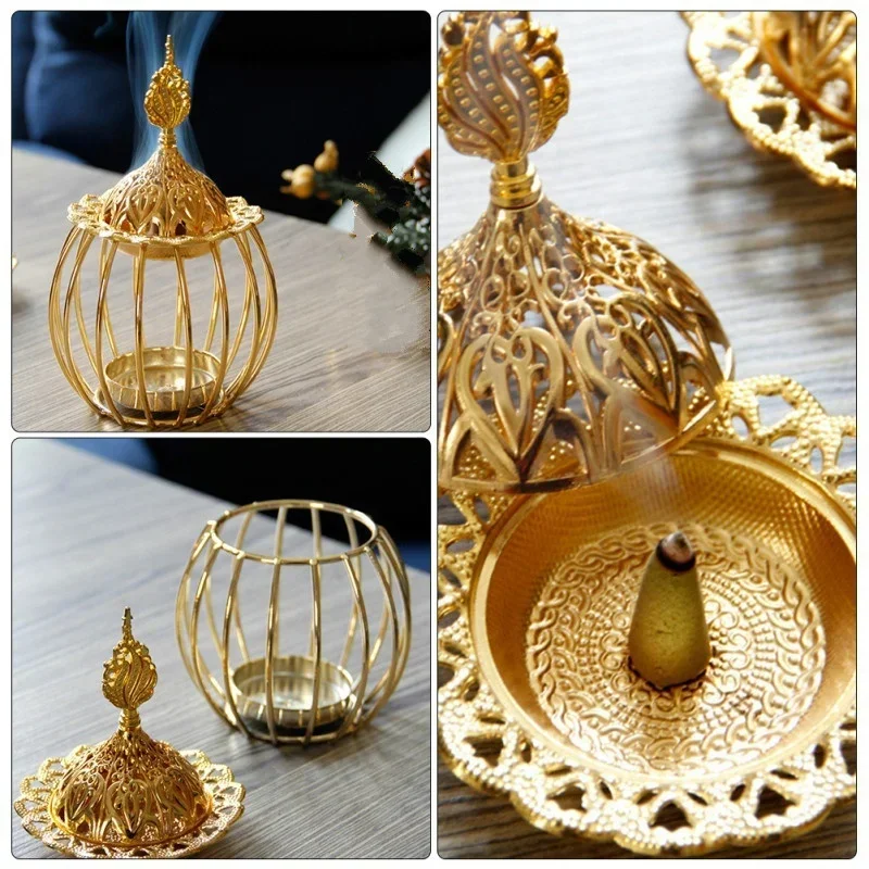 Quemador de incienso de Metal, soporte de incienso artístico de hierro, candelabro de torre dorada, incensario de porcelana de Metal dorado, casa budista, estudio de YogaDescripción del producto: