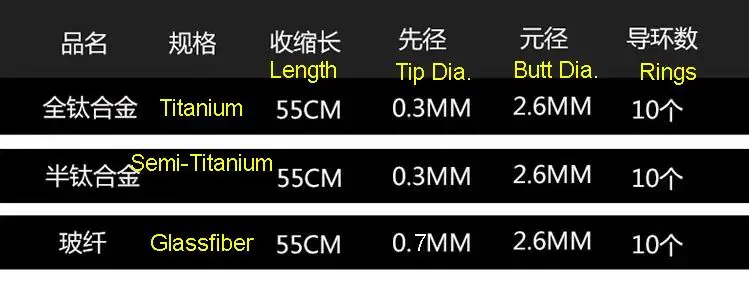 Punta de titanio de 55 cm, total de 11 anillos: 9 anillos de acero inoxidable + 2 anillos de porcelana