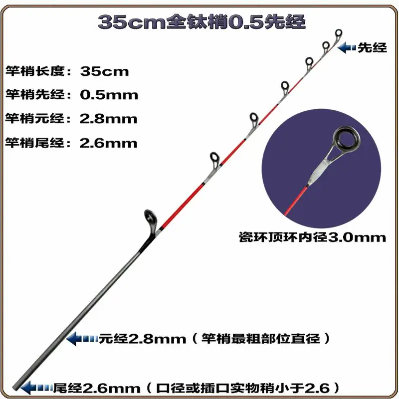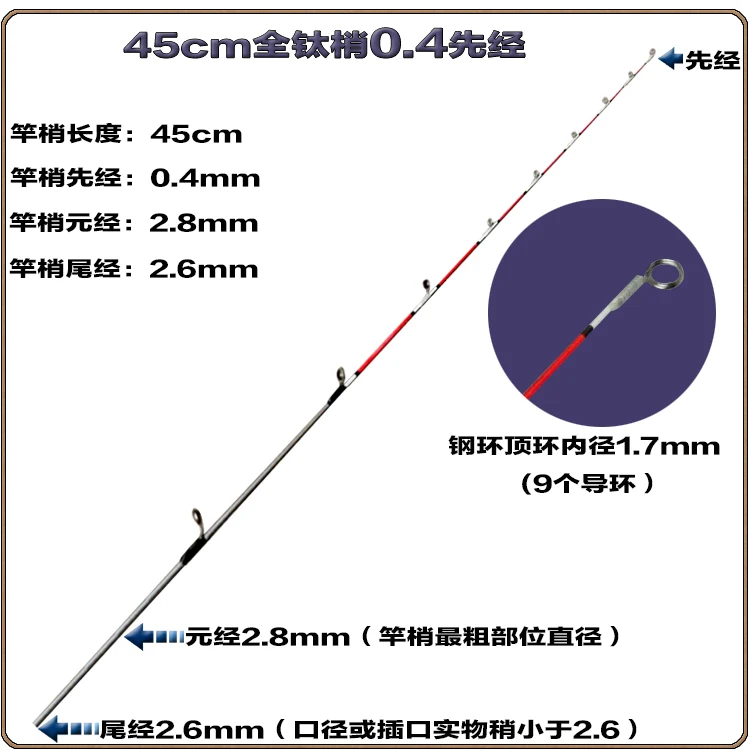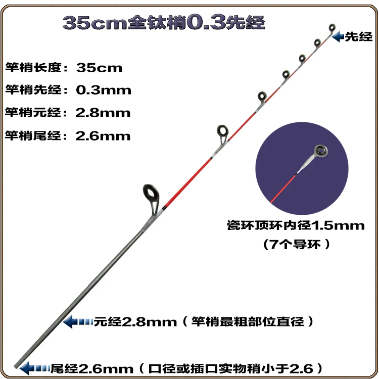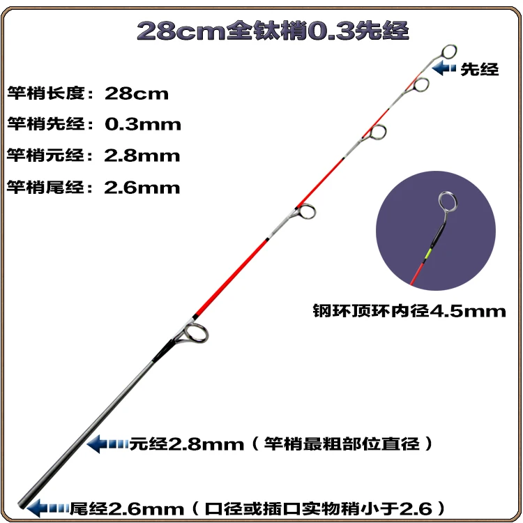 Ra003 RA003TS 28cm 35cm 45cm punta de titanio 0,3mm 0,4mm 0,6mm 0,7mm 1,2mm 1,5mm balsa de hielo puntas de caña de pescar de fundición fuera del mar
