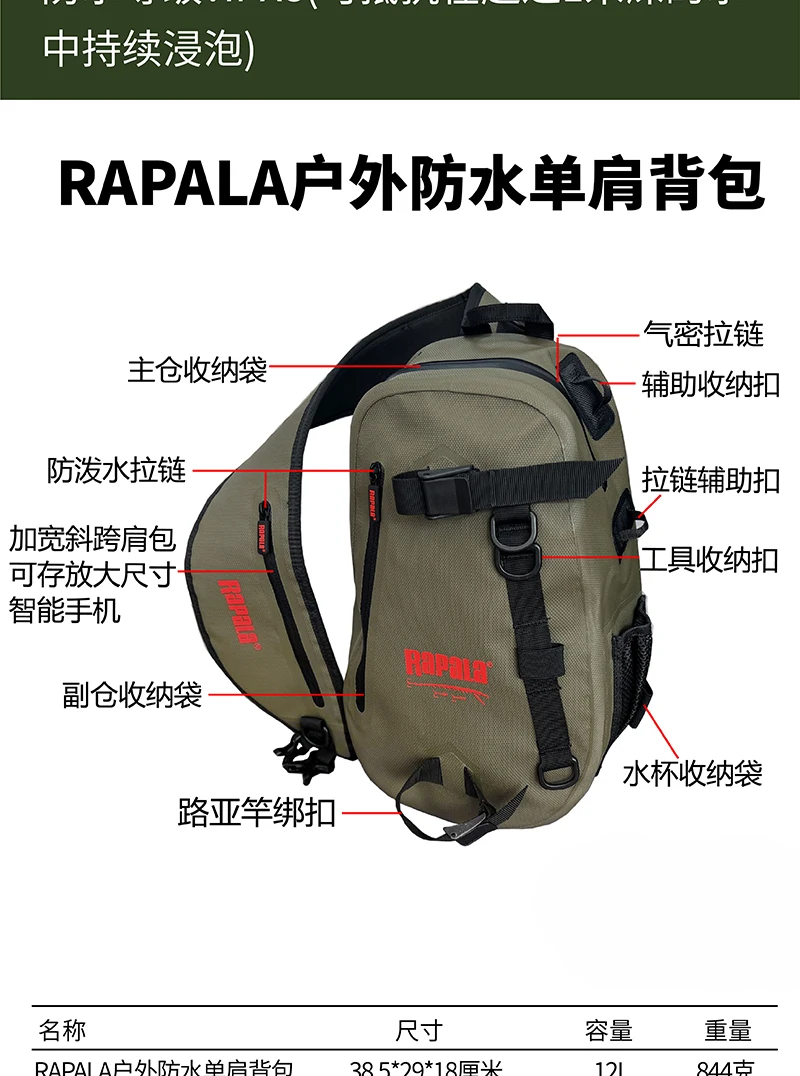 Rapala-Bolso de hombro multifunción impermeable, bolsa de pecho, pesca salvaje, Airtight, Luya Wading, al aire libre