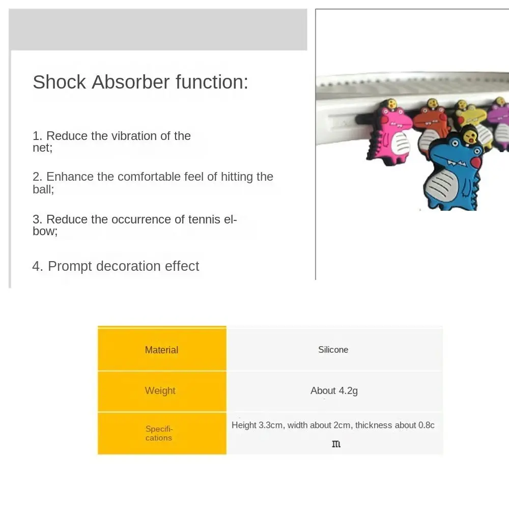 Grosor: alrededor de 0,8 cm (0,31 pulgadas) Tamaño: 3,3*2cm (1,30*0,79 pulgadas) Peso: alrededor de 4G Material: silicona Lista de embalaje: 1 almohadilla de choque para raqueta de tenis. Características: 1. Reduce la vibración de la red. 2. Mejora la sensación cómoda de golpear la pelota. 3. Reduce la aparición del codo de tenista. 4. Efecto decorativo