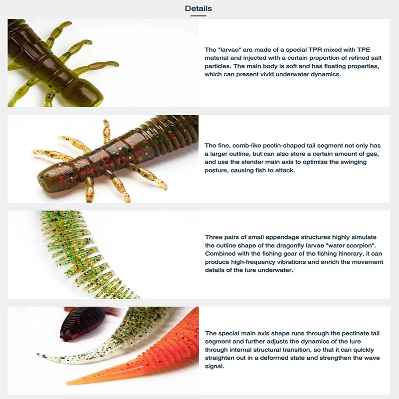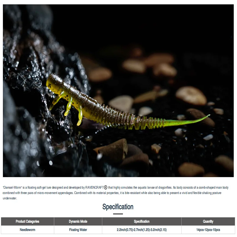 RAVENCRAFT DAMSEL-WORM 2,2/2,7/3,2 pulgadas señuelo suave flotante modo de concurso creatura de hiper calidad cebo de pesca Artificial